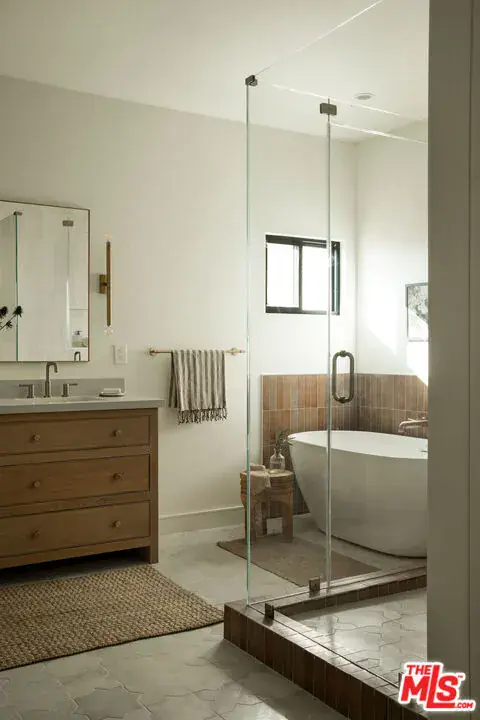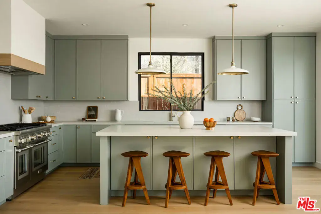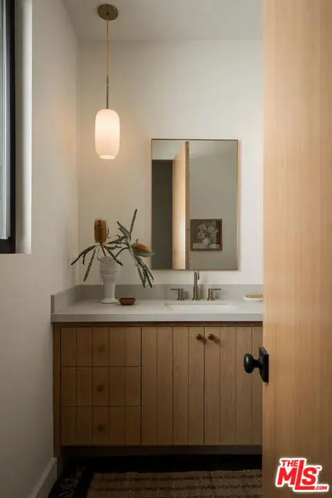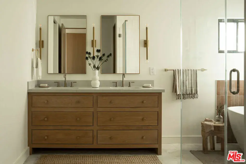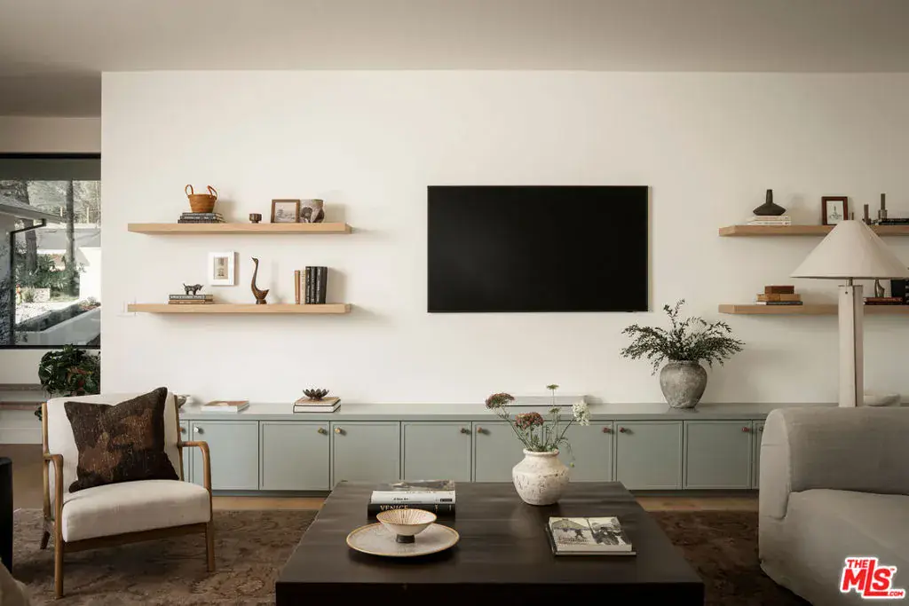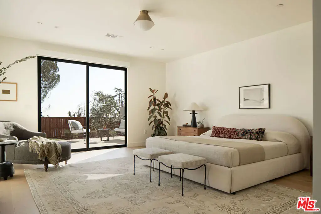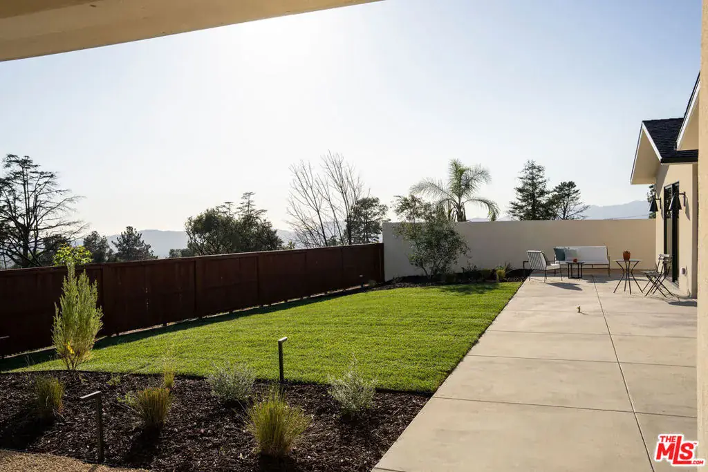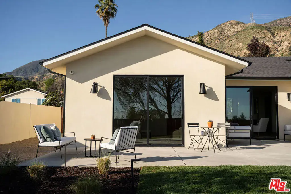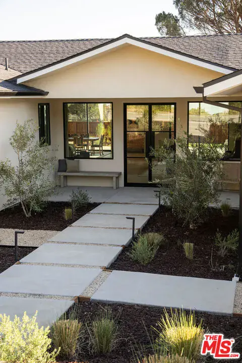 Originally built in 1964 and masterfully rebuilt in 2025/26, this 4 bedroom, 3 bathroom one-story residence spans approximately 3,245 square feet and blends striking modern design with the enduring charm of Altadena. Set behind a dramatic stucco + stone-clad facade and surrounded by serene, artfully landscaped grounds, the home offers a rare sense of privacy, beauty, and intention. Inspired by the original footprint, the property was meticulously reconstructed following the Eaton Fire, with a deep commitment to craftsmanship, quality materials, and honoring the spirit of the Altadena community. A path of stone pavers winds through native plantings and sculptural olive trees, leading to a striking glass double-door entry that sets the tone for the designer sanctuary within. Inside, a grand open layout unfolds beneath soaring ceilings. A versatile den flows seamlessly into a spacious family room with custom built-ins, a mounted flat-screen, and a whole-home speaker system, creating an ideal environment for everyday living and effortless entertaining. Beyond, a sun-filled dining area connects to an impeccably designed chef’s kitchen, anchored by a generous island with bar seating, stunning countertops, and custom cabinetry accented with elegant brass hardware. High-end Thermador appliances include a range, microwave, integrated refrigerator and dishwasher, complemented by Zephyr under-counter refrigerator drawers and a wine refrigerator. Multiple sliding glass doors open to the outdoors, maximizing the home’s seamless indoor-outdoor flow. Thoughtfully designed for comfort and privacy, the home’s layout places the expansive primary suite in its own east wing, creating a serene retreat set apart from the additional bedrooms. Sliding doors frame a tranquil yard and mountain views, while a large walk-in closet and spa-inspired bath elevate the experience with a double vanity, chic Star & Cross tile floors, an oversized shower, and a separate soaking tub. On the opposite side of the home, the west wing hosts the remaining bedrooms, offering ideal separation for family or guests. Two generous bedrooms share a beautifully appointed Jack-and-Jill bath with dual vanities and a tub-shower combination. A fourth bedroom, a stylish hall bath with striking slate tile floors and elegant shower, a dedicated laundry room, and built-in hall storage complete this well-appointed wing. Outdoors, the backyard is an entertainer’s oasis. A sprawling lawn offers space for play and relaxation, framed by olive trees, native plantings, and sweeping mountain views. Host dinner parties beneath the covered patio off the kitchen, gather in the open-air entertaining patio beneath the stars, or simply enjoy the tranquility of this thoughtfully designed outdoor retreat. The home is outfitted with thoughtfully integrated modern systems, including a full Control4 smart home system with Lutron lighting, integrated Sonos whole-home audio, central iPad control, security system with exterior cameras, and Starlink internet with two years prepaid. Major infrastructure upgrades include all-new HVAC, a tankless water heater, updated electrical and plumbing, a new sewer line, and underground power lines. Fire-conscious construction was a priority, with a spark-resistant composition roof, concrete composite siding under the eaves, and low-flammability exterior materials. A two-car garage completes the home, offering epoxy flooring, generous storage, and pre-wired for an EV charger. Ideally located in Altadena, the property is moments from beloved neighborhood favorites, including Unincorporated Coffee Roasters, Stumptown, Betsy, Miya, Prime Pizza, and many others, as well as easy access to hiking trails, outdoor recreation, and the scenic foothills of the San Gabriel Mountains. Carefully rebuilt with intention, design, and durability in mind, this exceptional home offers a rare opportunity to enjoy modern living while honoring the soul of a classic Altadena retreat.