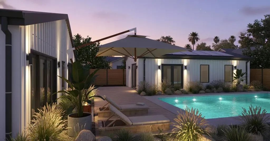 New Modern Farmhouse with ADU and mountain views, featuring fire-resistant construction and built almost entirely with non-combustible materials. This stunning new build in Altadena features an all-light-gauge steel-framed home with a 3-bedroom, 2.5-bath main house, an attached garage, and a flex space (2,522 SF), plus a detached 1-bedroom, 1-bath ADU (525 SF). The open-concept design highlights a gourmet kitchen with quartz counters, custom cabinetry, stainless steel appliances, and a spacious great room with. The ADU offers endless possibilities as a rental unit, guest suite, home office, recreation area, or multi-generational living space, complete with its own kitchenette and washer/dryer. This exceptional property includes solar panels, landscaped outdoor living areas, and a stylish pergola, with an optional pool and deck upgrade available for those seeking a resort-style backyard. Located in a desirable Altadena neighborhood known for its natural beauty, this tight-knit community offers residents mountain views, outdoor recreation, and proximity to Pasadena’s vibrant shops, dining options, and cultural attractions. Home is to be built. Renderings are for illustrative purposes only; final design, finishes, and landscaping may vary. Wall panel details can be provided upon request, along with additional design options and exterior choices.