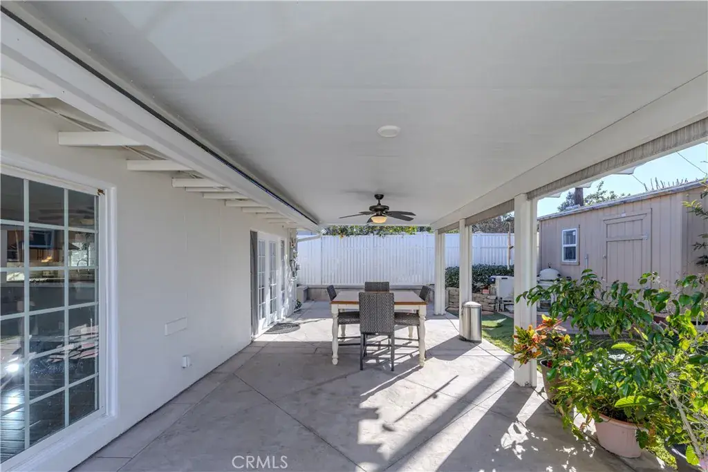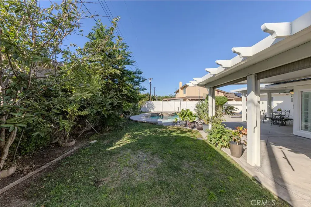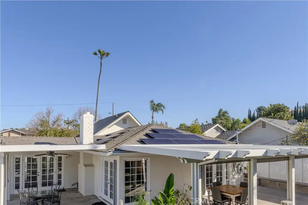 Step outside to enjoy true Southern California living in the private backyard, featuring a sparkling pool installed in 2017—ideal for both relaxation and entertaining. The owned solar system helps reduce electricity costs to an average of approximately $61 per month and also heats the pool for year-round enjoyment. The solar system is financed at approximately $95 per month over 30 years. (All figures represent average annual costs.) A 5-year-old 8×15 shed with a door and window is located near the pool and can easily be transformed into a he-shed or she-shed.
