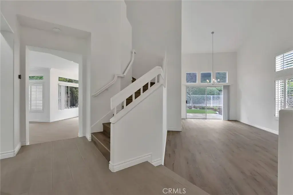 Welcome to refined living in one of Anaheim Hills’ most desirable and quiet luxury neighborhoods. This beautifully upgraded residence offers just under 2,500 square feet of thoughtfully designed living space, with four bedrooms and 2.5 baths. As you enter, you are greeted by a spacious, high-ceilinged foyer that opens to an expansive living room and large formal dining room, creating an impressive and airy first impression. Cathedral ceilings and abundant natural light enhance the sense of volume and elegance. Sliding glass doors provide seamless access to the backyard, making indoor-outdoor living effortless. The warm and inviting family room features a cozy fireplace and flows naturally into a charming breakfast area and the fully remodeled kitchen. A second set of sliding glass doors connects this space directly to the backyard, ideal for entertaining or everyday enjoyment. An inside laundry room adds convenience. Upstairs, you’ll find four generously sized bedrooms, including a spacious primary suite with a large walk-in closet. All bathrooms have been fully remodeled with new fixtures throughout, including new toilets, and each bath is enhanced with contemporary lighted mirrors featuring touch-button controls, creating a spa-inspired atmosphere. The home has been completely re-piped and permitted, offering peace of mind and long-term value. The kitchen showcases brand-new cabinetry, quartz countertops, modern faucets, and designer light fixtures. Brand-new tile flooring enhances the kitchen and bathrooms, while the second level features nearly new luxury vinyl flooring for both elegance and durability. The interior has been completely repainted in a fresh, sophisticated palette. On the exterior, the home has been freshly painted and beautifully refreshed with new landscaping and a water-saving drip irrigation system, blending curb appeal with efficiency. The wide side yard offers ample space for large planters or a thriving vegetable garden, adding both charm and functionality for those who enjoy homegrown living. A truly turnkey opportunity in a prime Anaheim Hills location – simply move in and enjoy.