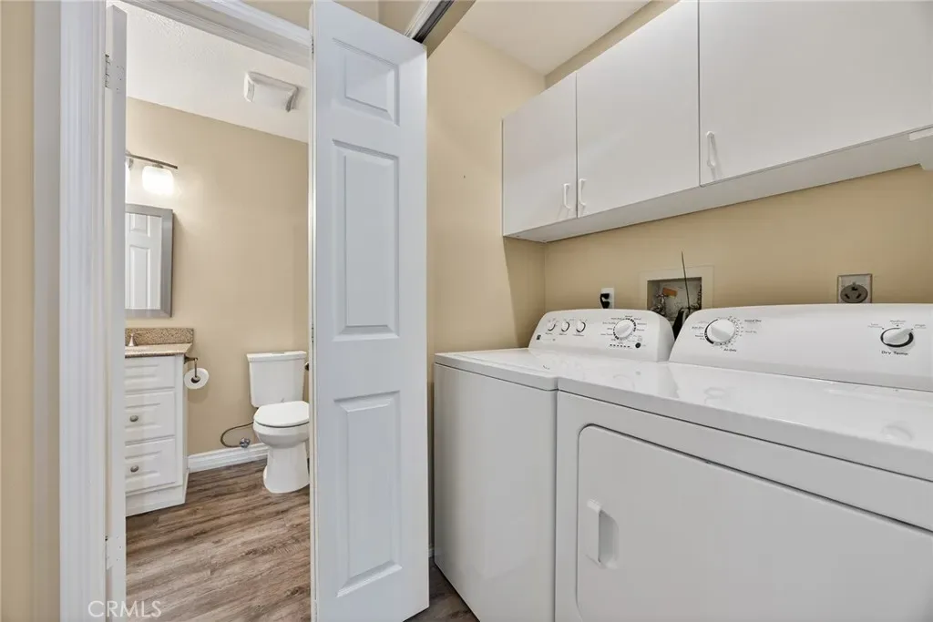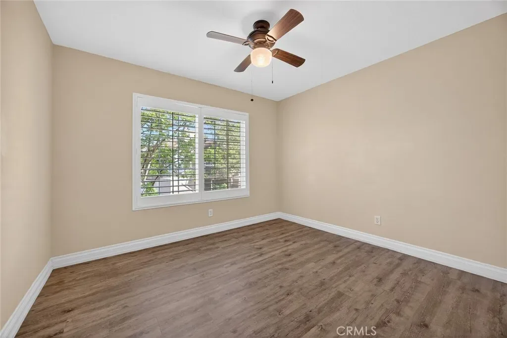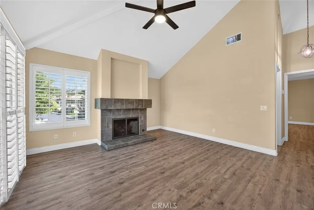 Welcome to this beautifully upgraded 2-bedroom 2-bath condo in the highly desirable Laurelwood Community of Anaheim Hills. This light filled home features an open floor plan enhanced by skylights that bring in abundant natural light throughout. The spacious living room offers high ceilings and a cozy tiled fireplace that flows seamlessly into the dining and kitchen areas. Beautiful LVP plank flooring throughout. The upgraded kitchen boasts tile countertops, and plenty of storage space. Both bathrooms have been tastefully updated with tile showers and granite vanities. Additional highlights include dual pane windows and sliding doors for energy efficiency and comfort. Beautiful Shutters on all windows and sliding doors. Enjoy the privacy of having no neighbors above you along with the convenience of a 2 car garage located directly beneath the unit. Enjoy relaxing on the 2 balconies. One Balcony is off the master bedroom. Prime location in Anaheim Hills, just minutes from shopping, dining, schools, and easy freeway access. Association has 2 pool and spa areas. Very well-maintained grounds.