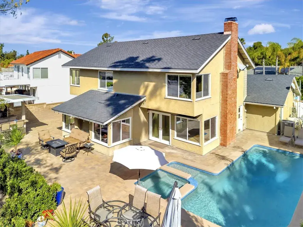 Get ahead of the spring surge and take a close look at this exceptional home in highly prized Anaheim Hills. Tucked away at the end of a flat, level cul-de-sac, the property enjoys a quiet, private setting on a large lot overlooking adjacent Copa de Oro – an ideal combination! The double-door entry welcomes you into the spacious living room with graceful bay window, flowing seamlessly into the formal dining room with French door access to the patio – perfect for indoor-outdoor entertaining. * The fully remodeled kitchen is a true showpiece, featuring a large center island with breakfast bar, additional in-kitchen dining, gorgeous solid wood cabinetry with soft-close doors and drawers, and a 6-burner stove complete with pot filler. Thoughtful details abound, including a baking center cabinet and built-in spice rack drawers you may not notice at first glance. Adjacent to the kitchen is an equally generous family room with a traditional brick fireplace, mounted TV, built-in cabinetry, and direct patio access. * The backyard is truly the crown jewel of the home. Recently redesigned and upgraded, it features a sparkling pool & spa with all-new equipment, an expansive brick-paver patio, and a standout cabana-style shed complete with BBQ, bar seating, and mounted TV – icing on the cake of an entertainer’s dream that makes it hard to go back inside! Privacy is enhanced by mature trees and the elevated lot, which looks over the adjoining rear neighbors. The rear slope is beautifully maintained with fruit-bearing citrus trees, a young avocado tree, bird of paradise, and established pathways & steps. * Upstairs, the spacious primary suite offers a brick fireplace and a remodeled bath featuring a large walk-in shower with full-body spray and a separate jetted soaking tub. Three secondary bedrooms and an upgraded double-sink hall bath complete the upper level. * The downstairs back hallway includes a powder room, laundry room with patio and pool access, and direct entry to the finished 3-car garage with exceptionally large, finished overhead storage. * ADT system in place, excellent local schools, shopping, entertainment—including Angel Stadium, Honda Center, and Disneyland—are just minutes away, while commuting is convenient with easy access to the 91 & 55 freeways. This is a wonderful opportunity to upgrade to beautiful Anaheim Hills and enjoy its afternoon breezes and balmy evenings. Take a close look—this one deserves it and the timing couldn’t be better!