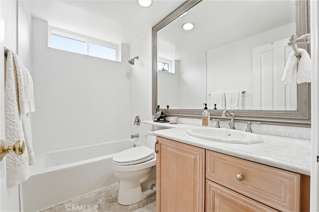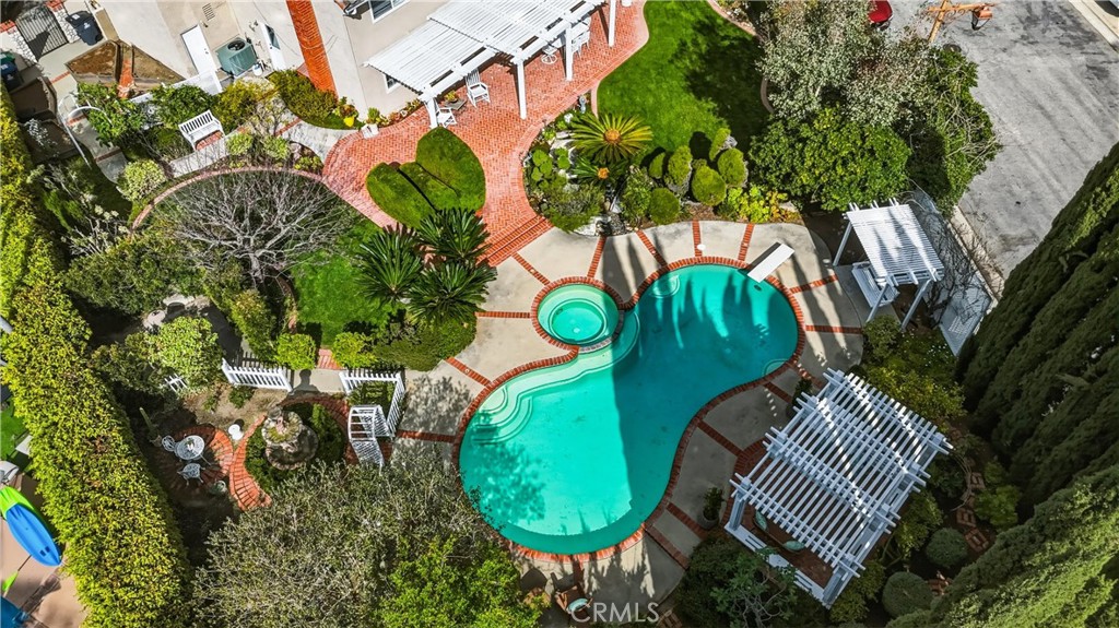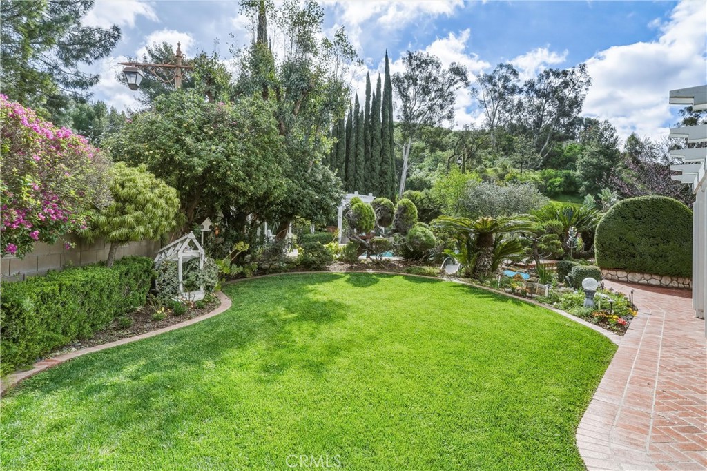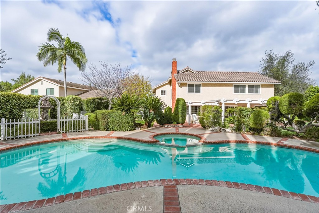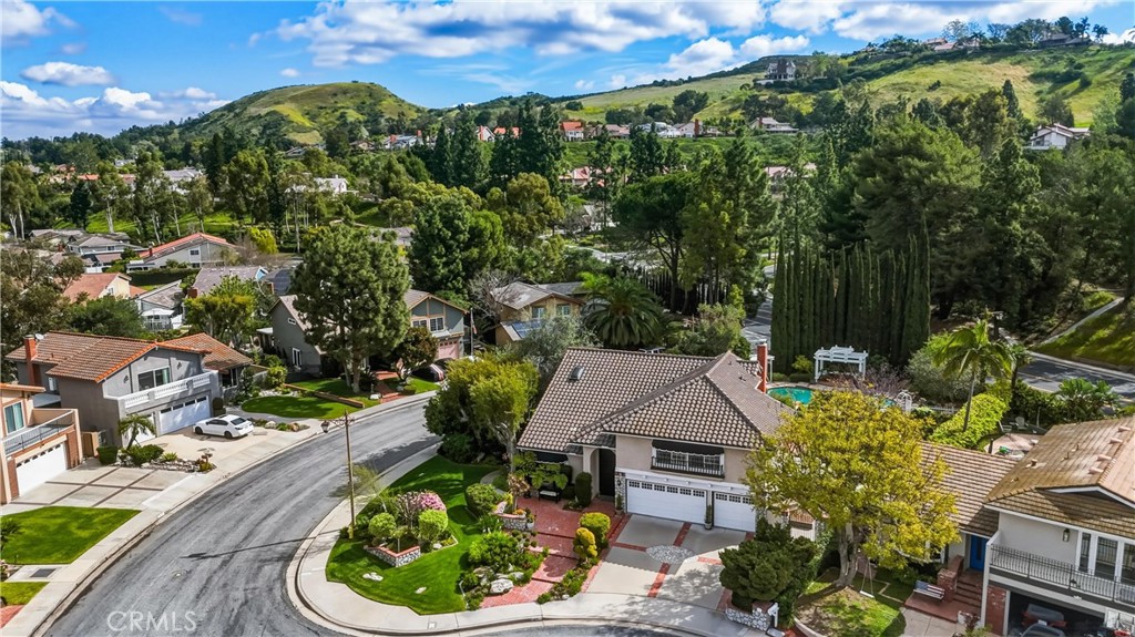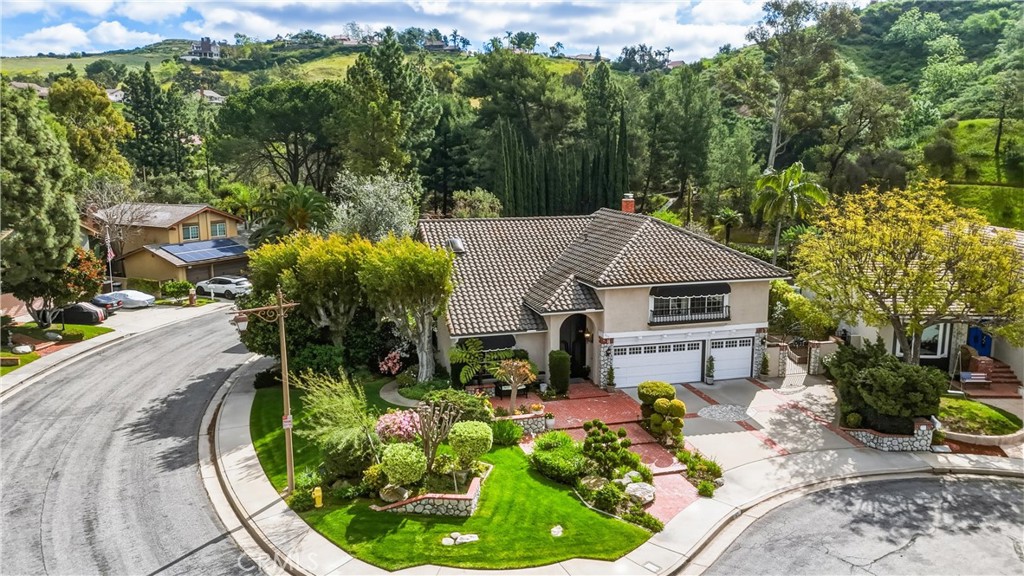 First time on the market since the 1970s, this cherished Anaheim Hills home sits on an extraordinary 14,250 sq. ft. garden property that has been featured multiple times on the renowned Mary Lou Heard Memorial Garden Tour. Located on a quiet cul-de-sac in the lush Anaheim Hills community known for its mature, towering pine trees, this 2,922 sq. ft. residence offers 3 bedrooms, 3 bathrooms, a 3-car garage and a large upstairs bonus room that many homeowners convert into two additional bedrooms, creating a potential 5-bedroom home. The inviting floor plan includes a formal living room, formal dining room, and a comfortable family room with a classic brick fireplace. The remodeled kitchen with center island opens nicely to the family room, making it ideal for both everyday living and entertaining. The downstairs level features beautiful gray porcelain tile flooring designed to resemble wide wood planks, along with a bathroom with shower and an indoor laundry room. Additional upgrades include a tankless water heater. Upstairs, all bedrooms are privately situated, including the spacious primary suite with dual sinks, a soaking tub and serene views overlooking the spectacular backyard gardens. The upstairs bathroom has been recently remodeled, and the oversized bonus room provides tremendous flexibility for additional bedrooms, a media room, or game room. The backyard is truly a private garden retreat. The stunning grounds—featured several times on the Mary Lou Heard Memorial Garden Tour—showcase mature specialty trees, fruit trees, vibrant flowering gardens, a tranquil koi pond, and a peaceful fountain. Designed for outdoor enjoyment, the yard also includes brick and concrete hardscaping, a patio cover, pool and spa and there are multiple raised wood planter beds specifically made for vegetable and herb gardens. Located near the Anaheim Hills reservoir with nearby hiking and biking trails, this exceptional property offers natural beauty, privacy, and space—all with no HOA. Homes with this much history, garden beauty, and pride of ownership rarely become available in Anaheim Hills.