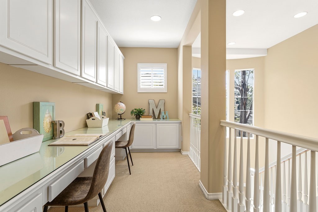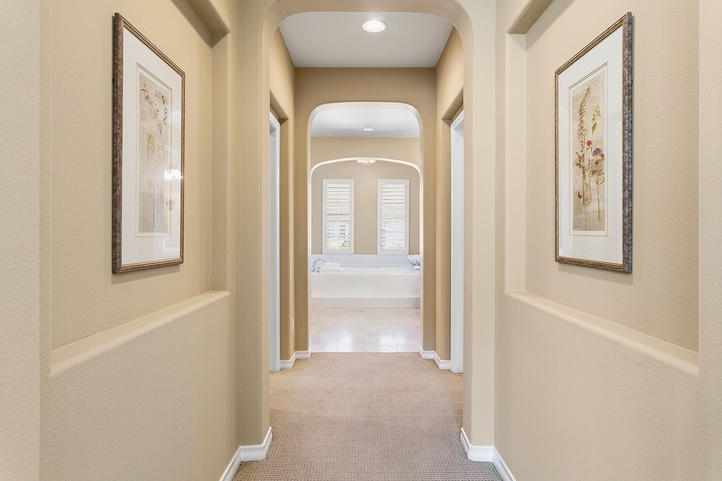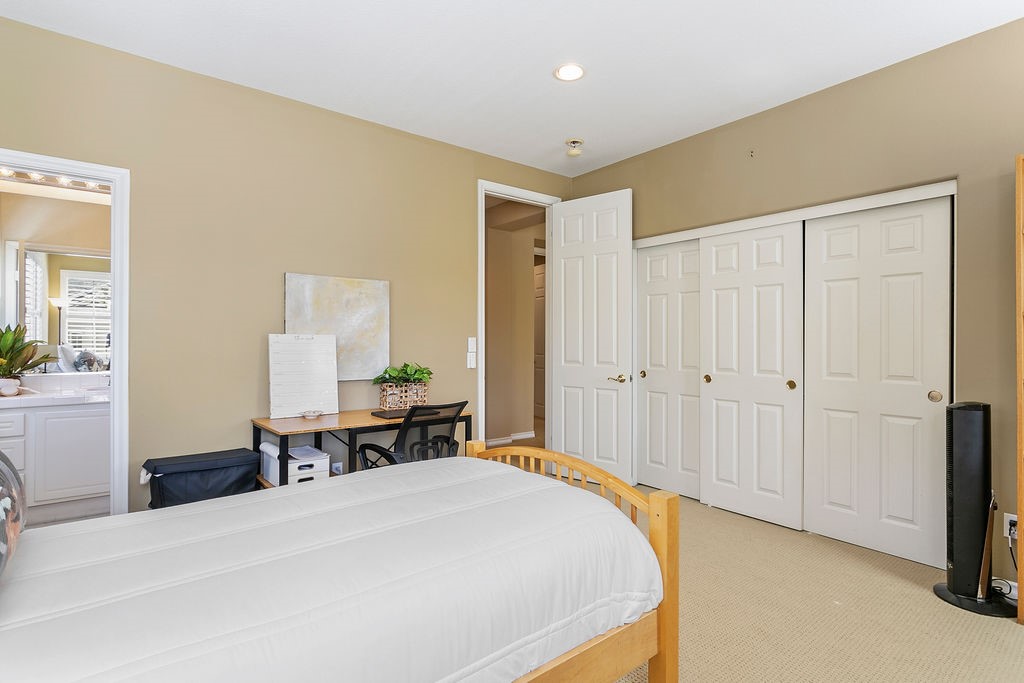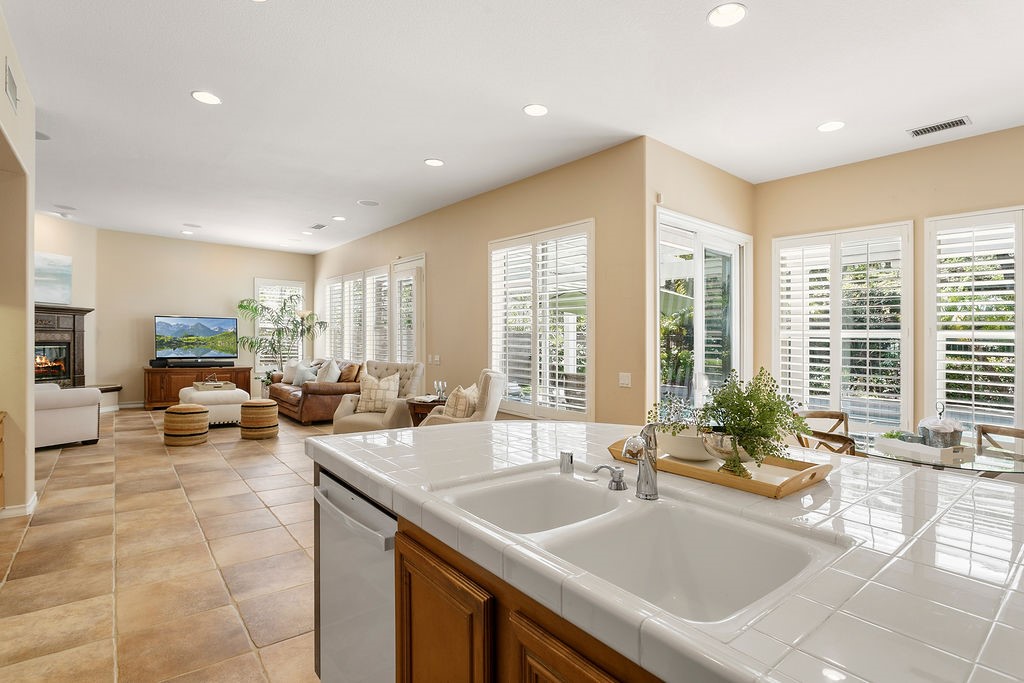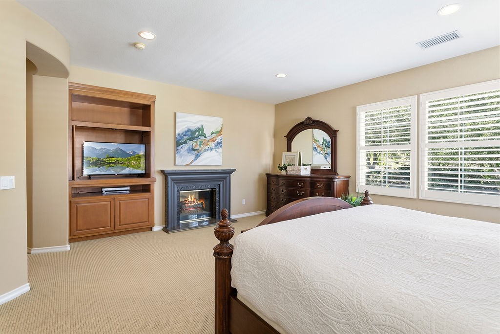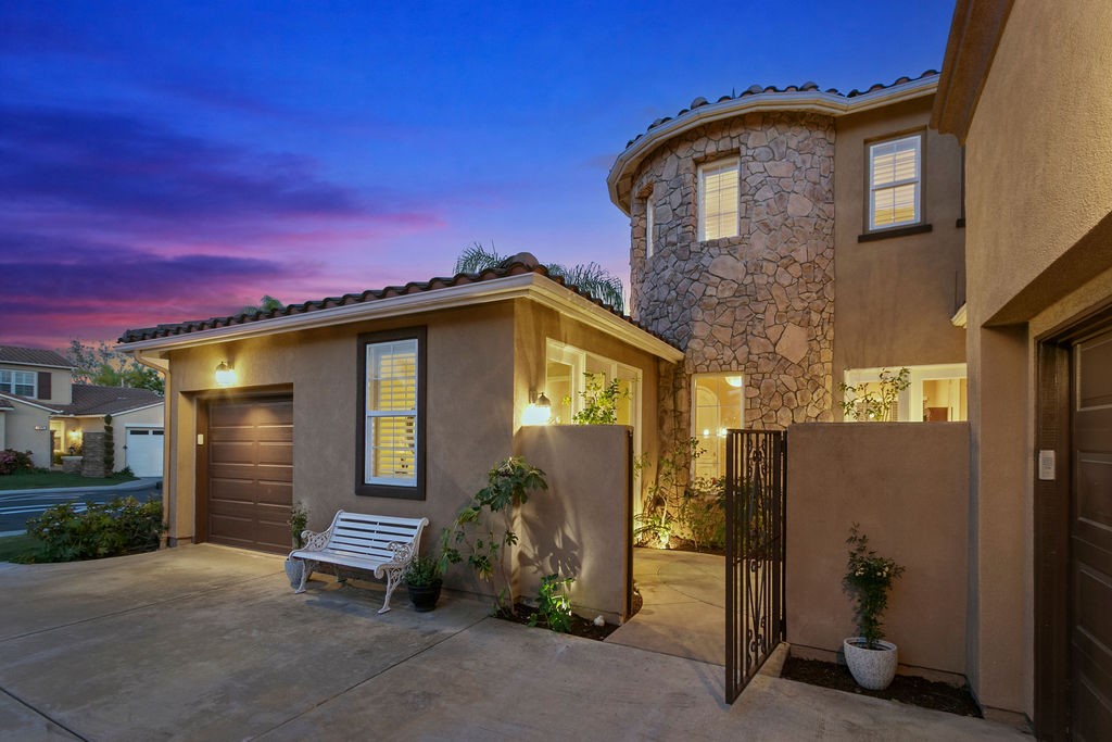 Behind the 24-hour guard gates of Summit Pointe, this distinguished Shea-built estate offers nearly 5,000 square feet of thoughtfully designed living space with soaring ceilings, charming outdoor courtyards, and a flexible floor plan suited for every season of life. A welcoming front entry courtyard sets a gracious tone and leads to an elegant foyer and private office with its own exterior entry. A flex space adjacent to the one car garage, benefits from its own side courtyard entrance, creating an exceptional opportunity for a home business, studio, or client-facing workspace with private guest access. Elegant formal living and dining rooms provide refined entertaining spaces, with the dining room opening to a peaceful outdoor sitting area and the living room centered around a warm fireplace. Toward the rear of the home overlooking the backyard entertaining oasis, the spacious family room with built-in cabinetry and fireplace flows into the casual dining area and kitchen featuring an island with seating and a built-in desk or beverage station. The backyard is designed for relaxed outdoor living with a pool, spa, and built-in BBQ set against a peaceful tree-lined hillside maintained by the HOA, creating a private and serene setting for entertaining or quiet evenings at home. A main-floor ensuite bedroom provides an ideal space for guests or multigenerational living with its own backyard patio. Upstairs, a loft with built-in desks creates a natural study or workspace hub. A dramatic front bedroom with turret architecture and ensuite bath adds architectural character, while two additional secondary bedrooms each feature their own private bathrooms. The expansive primary suite offers a true retreat with a separate sitting area and built-ins, a dual-sided fireplace shared with the bedroom, two separate walk-in closets, and a spa-inspired bath with soaking tub and oversized walk-in shower overlooking the tranquil backyard. Additional highlights include an attached two-car garage with overhead storage and a separate single-bay garage with front-facing windows offering flexibility for additional parking, storage, or workshop space. Energy-efficient plantation shutters, Milgard windows, and a newer tankless water heater enhance the home’s comfort and efficiency. Residents enjoy the privacy of a guard-gated community, access to nearby hiking trails, and proximity to award-winning schools, creating a lifestyle that melds natural beauty, comfort, and prestige.