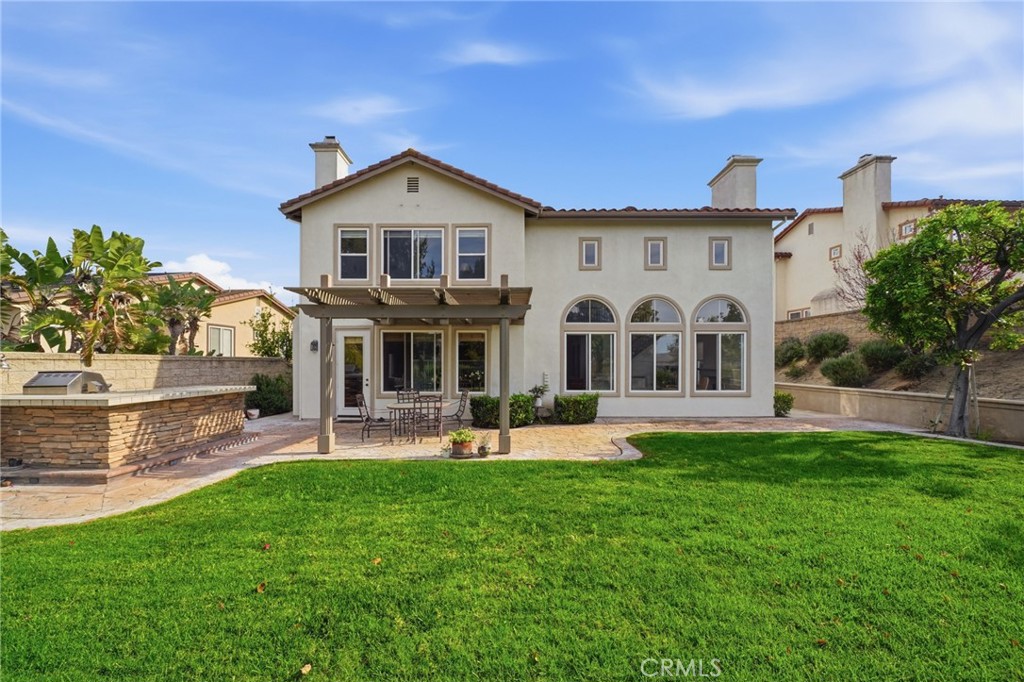 VIEW! VIEW! VIEW! Stunning canyon and city views from this beautifully upgraded executive home perched high in the Summit Springs community of Anaheim Hills. This exceptional residence features a fantastic floor plan with a spacious formal living room showcasing rich wood flooring and elegant custom touches throughout. The open-concept family room flows seamlessly into the gourmet kitchen, complete with granite countertops, stainless steel appliances, a large center island, and an additional dining area—perfect for entertaining. The home offers hardwood flooring throughout the downstairs and soft, neutral carpeting upstairs. One upstairs bedroom has been thoughtfully converted into a versatile bonus room with a study area. A convenient downstairs bedroom is ideal for guests or multi-generational living. The primary suite boasts breathtaking panoramic views of the city and surrounding hills. Step outside to a beautifully designed backyard with extensive hardscaping and a built-in barbecue—perfect for enjoying Southern California living. Pride of ownership shines throughout this well-maintained home. Located near award-winning schools and close to shopping, dining, and amenities. Don’t miss this incredible opportunity!