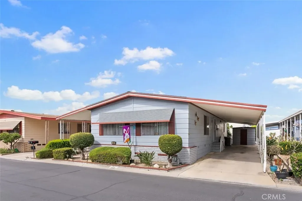 Welcome to Sunkist Gardens — Anaheim’s premier 55+ community where lifestyle, comfort, and convenience come together in perfect harmony. This manufactured home is more than just a place to live — it’s a retreat designed for ease, connection, and low-maintenance living in the heart of Orange County. Step through the front door and you’re greeted by a bright, expansive great room with vaulted ceilings and oversized windows that flood the space with natural light. The open-concept layout flows seamlessly from the living room to a generous kitchen — offering ample cabinetry, wraparound counters, a breakfast bar, and cozy nook that’s perfect for morning coffee or casual meals with friends. Your primary suite feels like a personal spa — featuring dual sinks, a walk-in shower, separate soaking tub, and plenty of room to relax and unwind. A spacious second bedroom provides flexibility for visiting guests, hobbies, or a dedicated home office. The home also includes an indoor laundry room with extra storage, a two-car tandem covered carport, and a private storage shed. But life at Sunkist Gardens is about more than what’s inside your home — it’s about the lifestyle just outside your door. Enjoy resort-style amenities including a sparkling pool, indoor spa, fitness center, clubhouse with community events, billiards room, library, and even a fenced dog park for your four-legged friends. And when you’re ready to explore, you’re just minutes from the Honda Center, Angel Stadium, Disneyland, Old Towne Orange, local hospitals, shopping, dining, and major freeways. Whether you’re downsizing, retiring, or simply seeking a more relaxed pace, this home offers a unique opportunity to enjoy it all — space, community, and location — without compromise. Discover the lifestyle you’ve been waiting for. Welcome home to Sunkist Gardens.