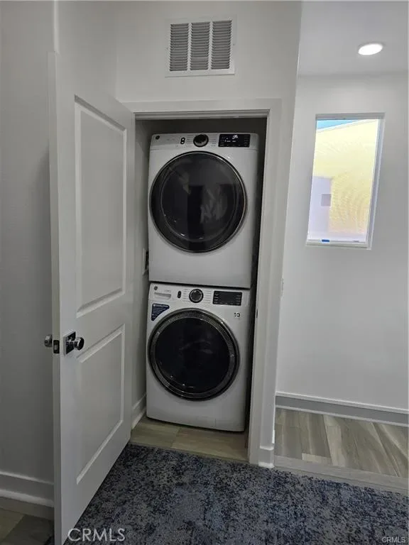 Ascend to the third level, where the master suite is a retreat with a large walk-in closet and en-suite bathroom featuring dual vanities, an oversized glass-enclosed shower, and a beautiful, space-saving sliding door. You’ll also find two spacious bedrooms, a full bathroom, and a full-sized washer and dryer on this level.