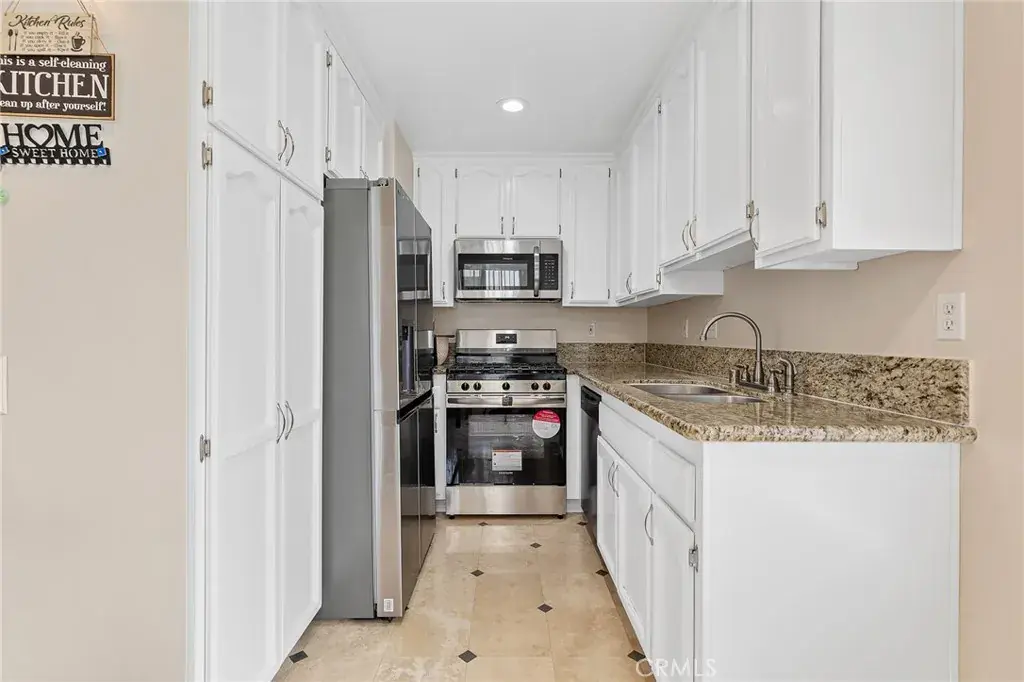 Stylish and beautifully maintained 3-bedroom, 2.5-bath condo offering 1,211 sq ft of modern living in the heart of Anaheim. This light-filled home features an open-concept layout, an updated kitchen with sleek cabinetry, granite countertops, and stainless-steel appliances, a spacious primary suite with an en-suite bath, and well-sized secondary bedrooms. Enjoy a private balcony, in-garage laundry, central A/C and heating, and the convenience of a two-car direct-access garage.