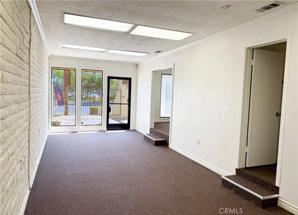 Well-maintained office space available for lease in a high-visibility Anaheim location near major streets and surrounded by established businesses, including a nearby supermarket. This move-in ready unit features central A/C, freshly painted walls, brand new carpet, and a functional layout that includes one private office, an open work area, and a private restroom. An interior brick veneer accent wall adds texture and character to the space. Secured front entry with decorative wrought iron fencing and gate offers added privacy and security while maintaining curb appeal. Rear parking is available for both tenants and visitors. Perfect for professional services, consulting, or small business use. Conveniently located with easy access to the 5, 57, and 91 freeways. Excellent opportunity to establish or grow your business in a central Orange County location.