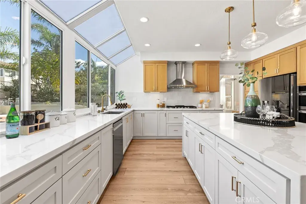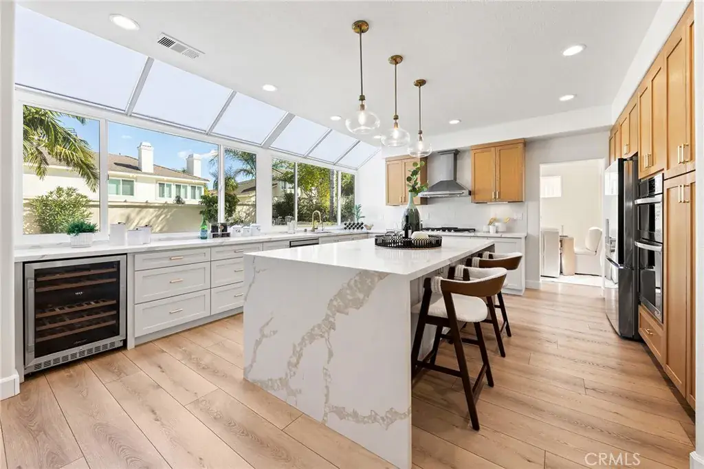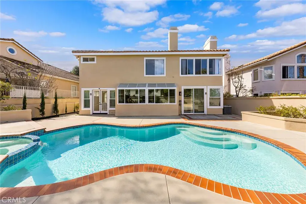 The remodeled kitchen offers brand-new LG appliances, updated cabinetry, stone countertops, a full stone waterfall island, and backsplash. Includes a three-car garage and a private backyard with swimming pool. Conveniently close to top-rated schools, parks, shopping, and dining.
