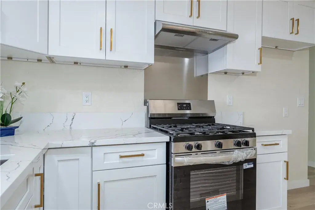 This property qualifies for a $30,000 first time home buyer grant! Welcome to Brookhurst Village Condominiums, a gated community offering comfort and convenience. This beautifully remodeled 3-bedroom, 2-bathroom downstairs unit features stunning vinyl plank flooring throughout and a spacious, eat-in kitchen with quartz countertops, shaker cabinets, brand-new stainless-steel appliances, and modern gold-accented hardware. Enjoy fresh paint, new dual-pane windows, recessed lighting, and new sliding doors. The primary suite is privately situated apart from the other bedrooms, offering dual closets and a gorgeous remodeled en suite bathroom with quartz countertops, shaker cabinets, and stylish modern fixtures. Two additional bedrooms are perfect for family or guests, complemented by a luxurious upgraded secondary bathroom. Enjoy the outdoor spaces for morning coffee or evening relaxation. Included are one assigned carport and one additional parking permit for open parking. Community amenities include two sparkling pools and spas, a tot lot, and a community laundry area. The unit is conveniently located close to its carport, with easy access to freeways, shopping centers, Disneyland, and restaurants. HOA covers gas, water and trash.