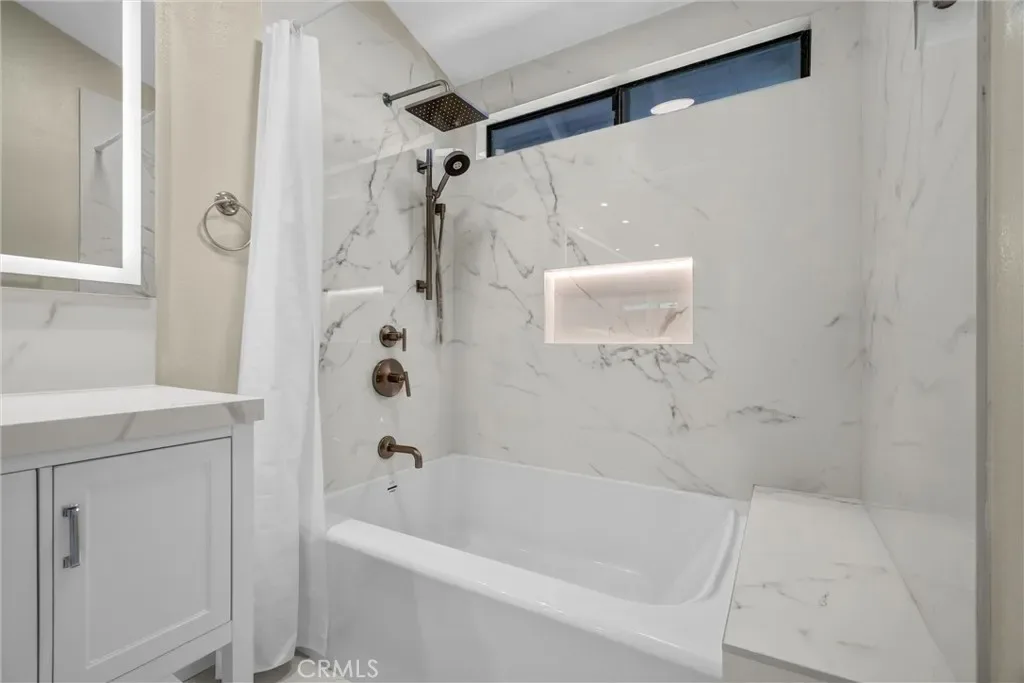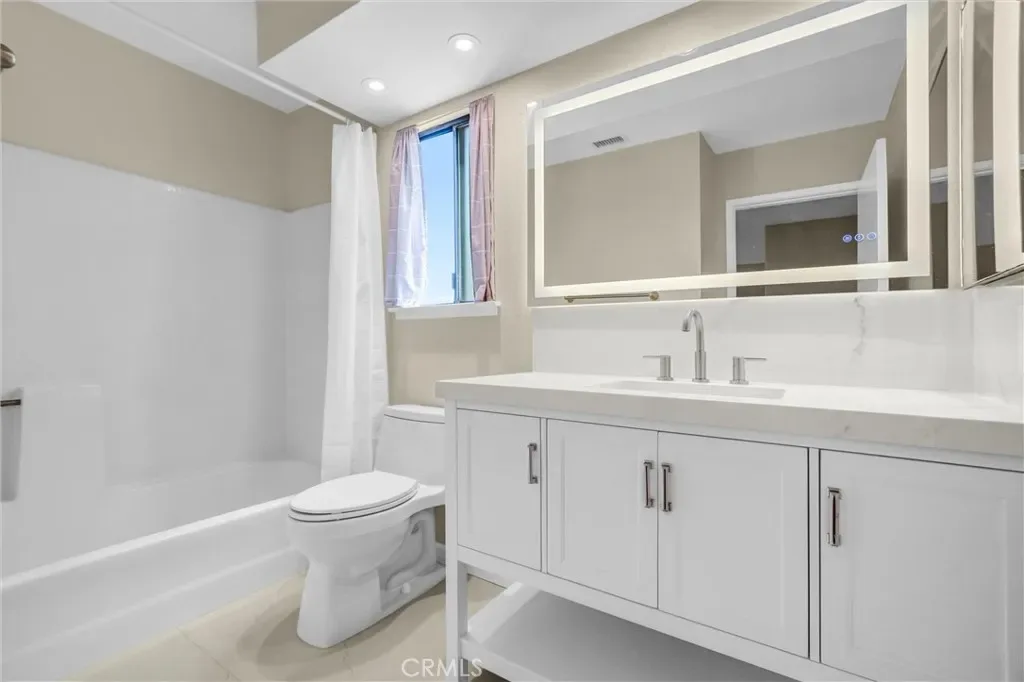 Numerous windows fill the home with abundant natural light, while soaring high ceilings and a fireside living room create a bright, open, and inviting atmosphere. The home features engineered wood flooring throughout, a brand-new modern kitchen, and tastefully renovated bathrooms, including a luxurious primary bath with versatile, multi-functional design.