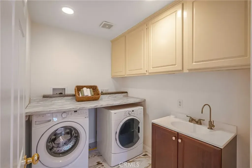 From convenience to comfort, this beautifully upgraded home offers the ideal Orange County lifestyle. Located in the sought-after Camrosa neighborhood near Twila Reid Park, this spacious residence features 5 bedrooms, 3 bathrooms, and approximately 2,858 sq ft of living space, including a highly desirable downstairs bedroom and full bath. Step inside to an open-concept layout filled with natural light, 9-foot ceilings, and a seamless flow designed for modern living. The recently updated kitchen showcases newer cabinetry, granite countertops, and a large island that opens to a grand family room complete with a stunning stone fireplace and built-in entertainment center. Recent upgrades within the last 3 years include interior paint, updated bathrooms, recessed and dimmable lighting with smart switches, and modern fixtures and fans throughout. The home is also equipped with a private security system and cameras for added peace of mind, along with built-in speakers throughout. The primary suite offers vaulted ceilings, abundant natural light, dual walk-in closets, and a spa-inspired bathroom featuring a soaking tub, separate shower, and dual sinks. Upstairs also includes three additional bedrooms and a convenient laundry room complete with washer, dryer, utility sink, and adjacent linen storage. The garage is thoughtfully equipped with built-in storage cabinets, a Tesla charger, water softener filtration system, and irrigation controls. Step outside to your private entertainer’s backyard featuring block wall fencing, a pergola with fan and lighting, BBQ setup, gas fire pit, artificial turf for low maintenance, and a beautifully curated succulent garden. Ideally located in the heart of Anaheim, just minutes from Disneyland, Knott’s Berry Farm, shopping, dining, and major freeways—this home truly has it all.