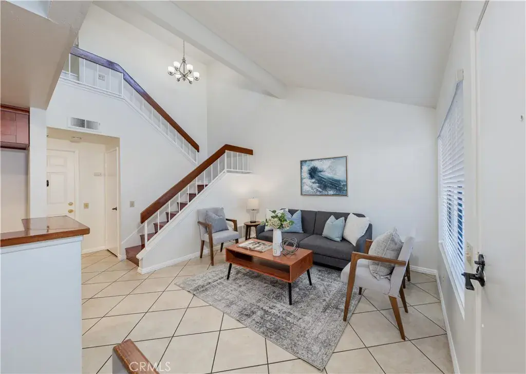 Welcome home to this enchanting two-story condo, encompassing approximately 1,002 sq. ft. of thoughtfully designed living space. This delightful residence features two spacious bedrooms and one and a half bathrooms, complemented by the convenience of an attached two-car garage. Nestled within the serene and prestigious Lakeview Townhomes and Condos community in Anaheim, this home is a true gem. Upon entering, you are welcomed by soaring ceilings that create an airy ambiance, allowing natural light to flood the space and enhance its inviting feel. The open flow from the living room, dining room, and kitchen amplifies the serene home design. The warm kitchen shaker cabinets perfectly harmonize with the elegant grey granite countertops, complete with a stylish serve-over bar, ideal for casual dining and entertaining. The primary bedroom is a personal retreat, with vaulted ceilings, a generous walk-in closet, and an ensuite bathroom that features a luxurious soaker tub and a large vanity counter for added convenience. Step outside to your serene private patio, the perfect sanctuary for relaxation, morning coffee, or evening gatherings. The community itself has been thoughtfully upgraded, including a new roof and various exterior enhancements, ensuring a well-maintained living environment. The homeowner’s association (HOA) takes care of water, allowing you to enjoy the abundant amenities, which include a stunning eight-acre private lake, meandering creeks, lush greenbelts, a sparkling pool, and a rejuvenating spa. Conveniently situated near freeways, shopping centers, schools, and parks, this condo offers easy access to a wide range of recreational activities. It’s the ideal blend of comfort, luxury, and location—making it a perfect place to call home.