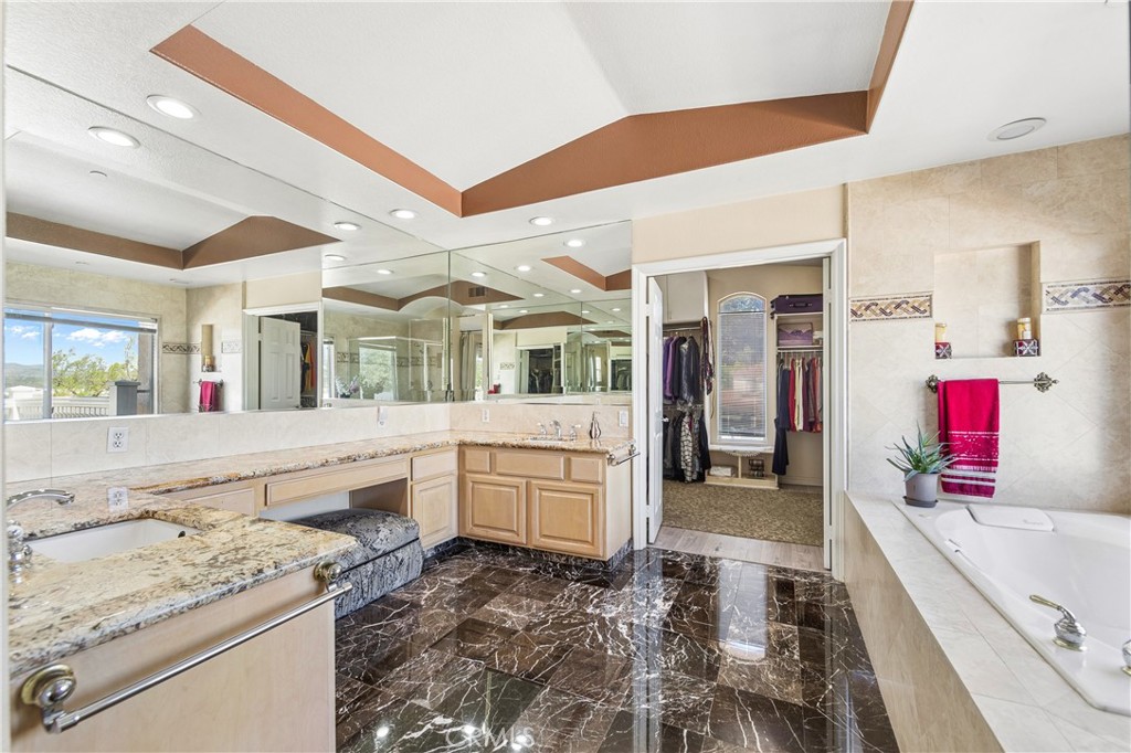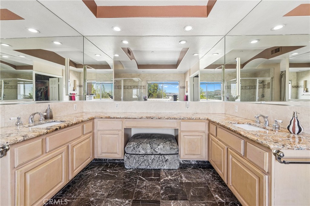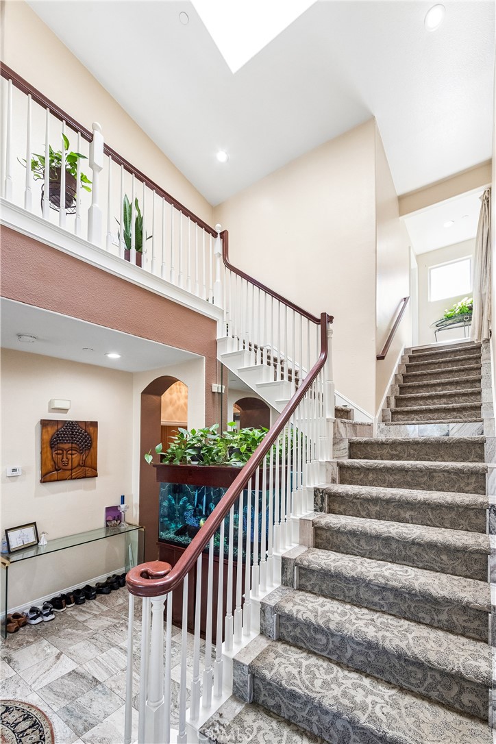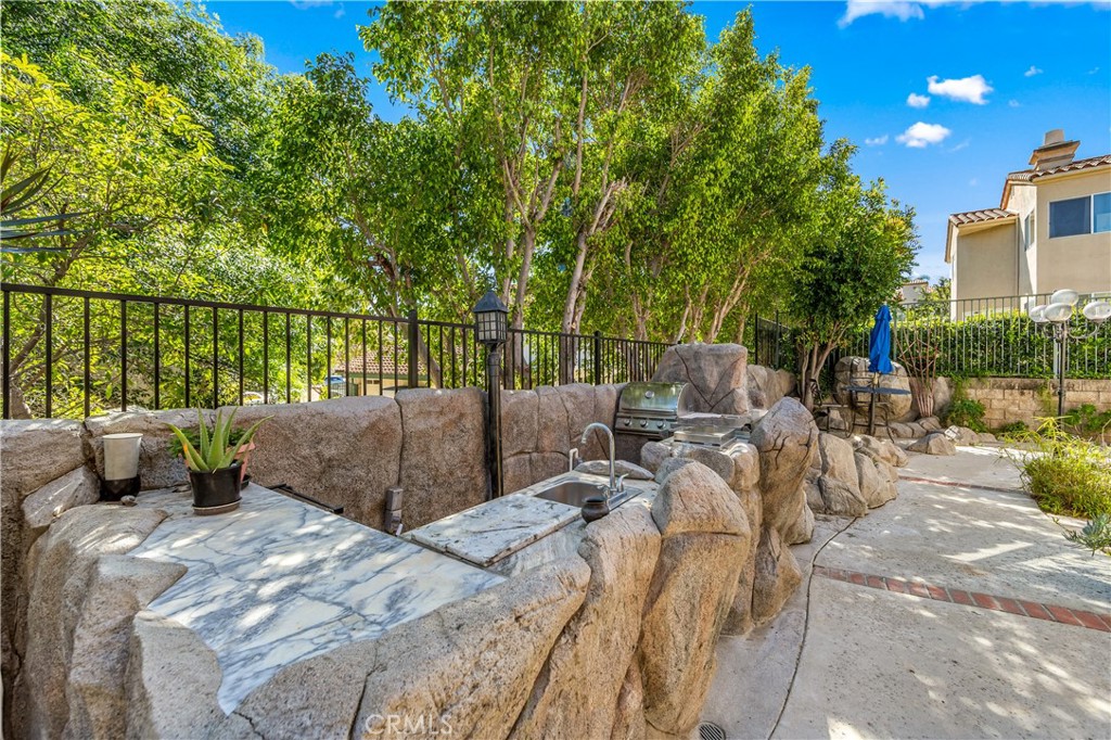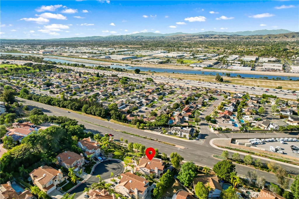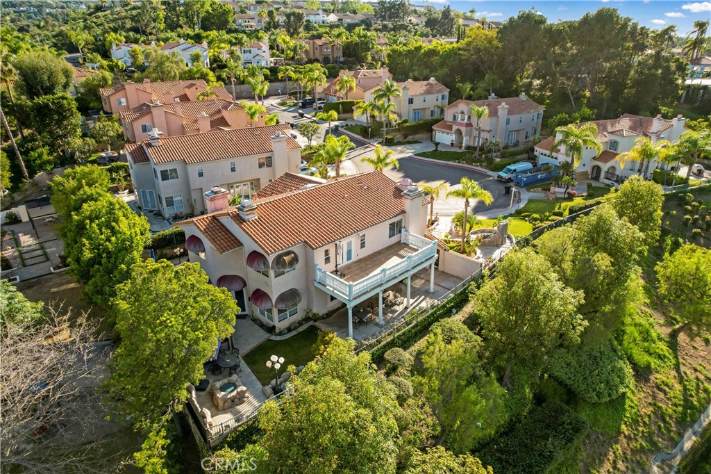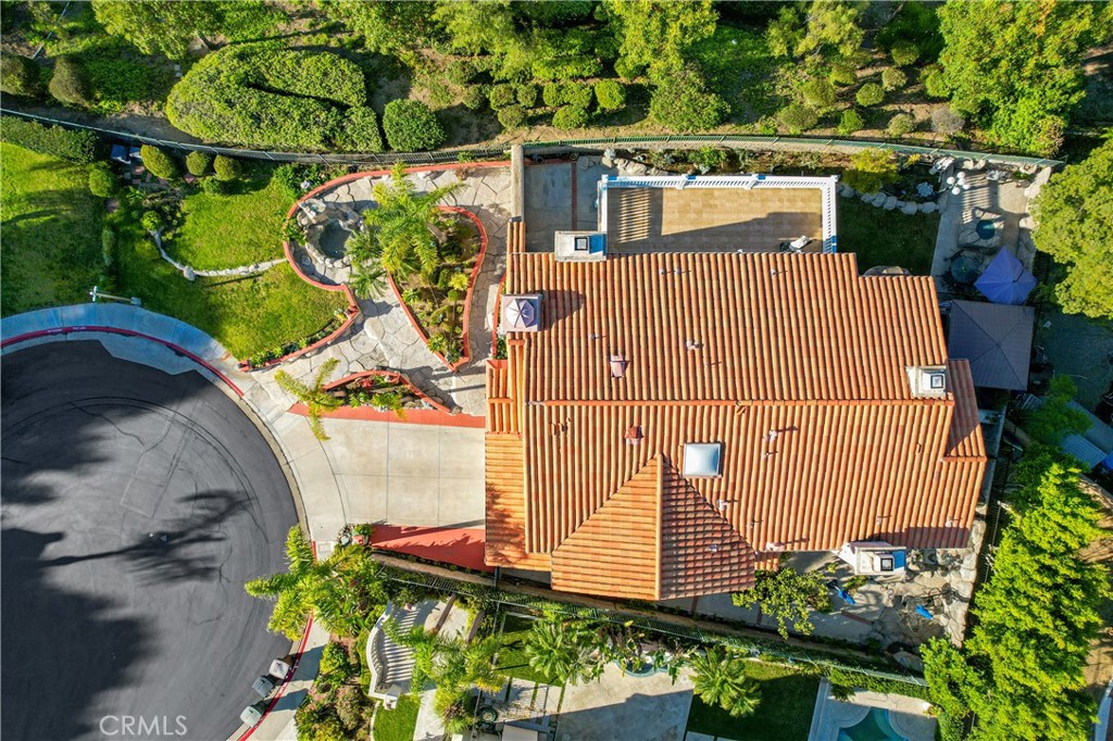 Nestled in one of Anaheim Hills’ most prestigious gated enclaves, this impressive residence occupies a coveted corner lot at the end of a peaceful cul-de-sac, offering privacy and sweeping panoramic views. High ceilings and expansive windows bathe the interiors in natural light, while double doors throughout create seamless connections to the meticulously landscaped grounds, crafting a perfect canvas for Southern California living. The formal sitting area, anchored by a warming fireplace, flows effortlessly into the formal dining room, which opens to the backyard—ideal for indoor-outdoor entertaining. This versatile space offers the potential to be converted into a downstairs bedroom suite, providing added flexibility for guests or multigenerational living. For more casual gatherings, a second dining area opens to the spacious kitchen and expansive family room warmed by a fireplace, creating an inviting space for everyday living. The main level guest bathroom ensures convenience for visitors, while flex space near the stairwell offers the potential to install a mobility lift, enhancing accessibility to the upper level. Upstairs, four generous bedroom suites, each with its own en-suite bathroom, provide comfort and privacy for family and guests. The primary retreat is complete with its own fireplace, a sprawling walk-in closet, and an expansive patio for your own private oasis. Outside, sculptural rock formations and cascading waterfalls create a tranquil, resort-like atmosphere, brought to life after dark by expertly designed landscape lighting. Multiple outdoor entertaining spaces—including fire pits, a built-in barbecue, and a shaded pergola—invite alfresco dining and gatherings against the backdrop of rolling hillside views. A three-car garage provides ample storage, complemented by a spacious driveway for multiple vehicles. Central heat and air throughout ensure year-round comfort. Ideally located near top-rated schools, scenic parks, shopping, and convenient freeway access, this home perfectly blends tranquility, luxury, and connectivity, offering a rare opportunity for resort-inspired living in Anaheim Hills.