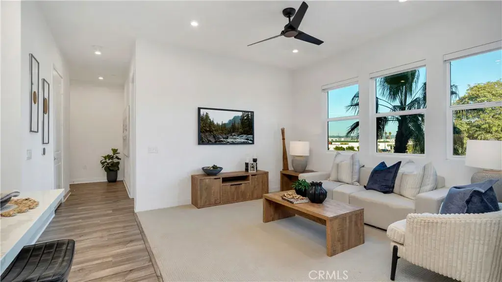 Welcome to 1130 S Urbana Street, a beautifully upgraded residence in the sought-after 100 West community by Toll Brothers, right in the heart of Anaheim’s vibrant resort district. This light-filled home features an open, modern floor plan with luxury vinyl flooring, quartz countertops, and thoughtfully selected designer finishes throughout. Large windows bring in abundant natural light, creating an airy, inviting feel that flows seamlessly from the living area to the kitchen, perfect for everyday living and entertaining alike. Step outside to your private patio, an ideal spot for morning coffee or unwinding at the end of the day. The spacious primary suite is a true retreat, complete with a spa-inspired shower and a generous walk-in closet. Additional highlights include a dedicated laundry room, paid solar, a private single-car garage, and an additional assigned parking space, a rare and valuable convenience. Residents of this gated community enjoy resort-style amenities including a pool, spa, and landscaped green spaces, all while being moments from Disneyland, Angel Stadium, the Honda Center, and major freeways for easy access throughout Orange County. This is low-maintenance, upscale living in one of Anaheim’s most dynamic locations, perfect for buyers seeking style, comfort, and convenience in a newer luxury community.