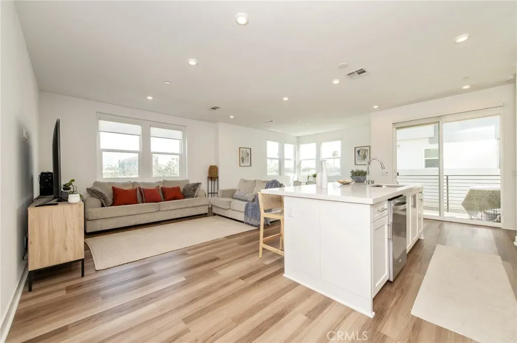 Bright end-unit in the highly desirable gated community of 100 West by Toll Brothers! This 3-bedroom, 2.5-bath tri-level home stands out with abundant natural light, added privacy, and a modern open layout designed for today’s lifestyle.The main living level features a spacious open-concept design with a stylish kitchen, quartz countertops, white shaker cabinetry, stainless steel appliances, and a private balcony—perfect for everyday living and entertaining. Wood flooring enhances the space, while upstairs offers all bedrooms on one level plus a convenient laundry area for added functionality.Located in Anaheim’s vibrant Platinum Triangle, just minutes from Disneyland, Angel Stadium, Honda Center, top dining, shopping, and major freeways. Enjoy resort-style amenities including pool, spa, BBQ area, and dog park within a secure gated setting.Rare end-unit + prime location+low tax —opportunities like this don’t last.