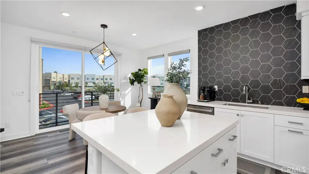 Welcome to 1669 W Lincoln Ave, a pristine tri-level condo built in 2024 and barely lived in, offering a modern, turnkey lifestyle in Anaheim’s highly desirable Emerald Pointe community. Designed for today’s discerning buyer, this home blends contemporary style with functional living. The second floor serves as the main living area and features an open-concept floor plan flooded with natural light through large windows, creating a bright, airy, and inviting atmosphere. The chef’s kitchen is a true centerpiece, boasting quartz countertops, stainless steel appliances, a large eat-in island, black custom backsplash, and chic pendant lighting. Step out from the dining area onto your private balcony ideal for morning coffee, evening relaxation, or entertaining guests. Upstairs, the luxurious primary suite offers a spa-inspired walk-in shower, dual vanities, and generous closet space, creating a serene retreat. The second bedroom enjoys its own private bathroom, perfect for guests or roommates. Premium luxury vinyl flooring flows throughout the main areas, while plush carpeting adds warmth and comfort to the bedrooms and stairs. Additional features include an attached two-car garage and the peace of mind that comes with living in a gated community. Residents enjoy resort-style amenities including a sparkling pool, spa, and beautifully landscaped green spaces, providing the perfect balance of relaxation and recreation. Conveniently located, this home is just minutes from Disneyland, Angel Stadium, the Honda Center, and major freeways, making travel across Orange County effortless. Trendy dining, shopping, and entertainment options are just moments away, giving you the vibrant lifestyle you crave. 1669 W Lincoln Ave offers modern, stylish living with resort-like amenities and an unbeatable location. With its light-filled spaces, high-end finishes, and thoughtful design, this home is a rare opportunity to enjoy comfort, luxury, and convenience all in one.