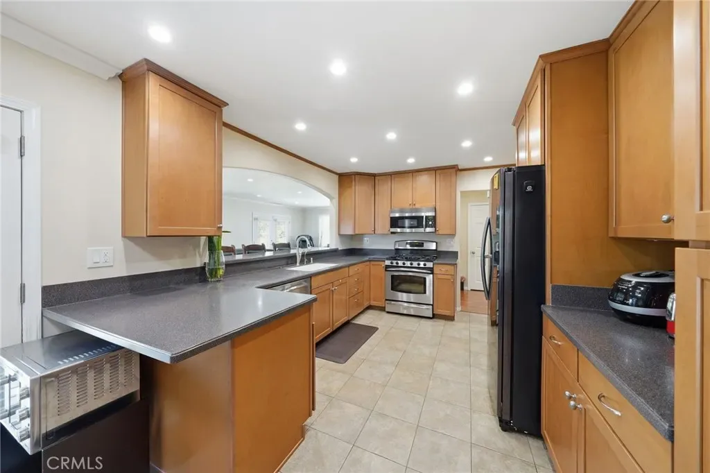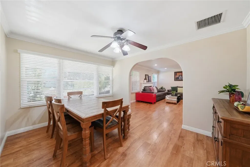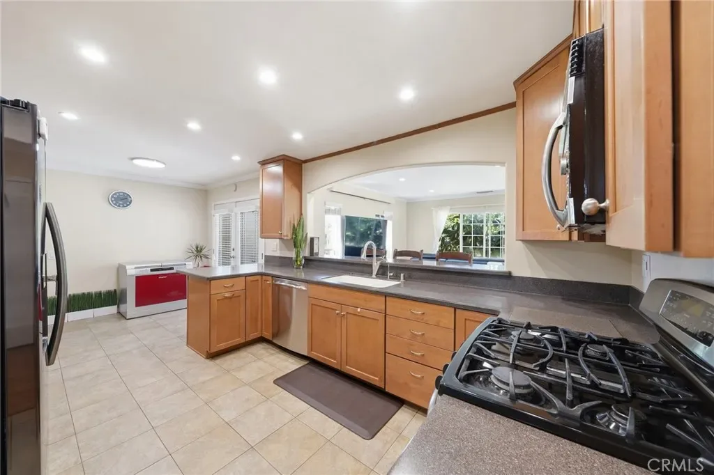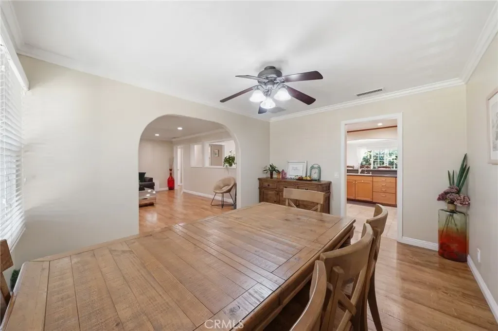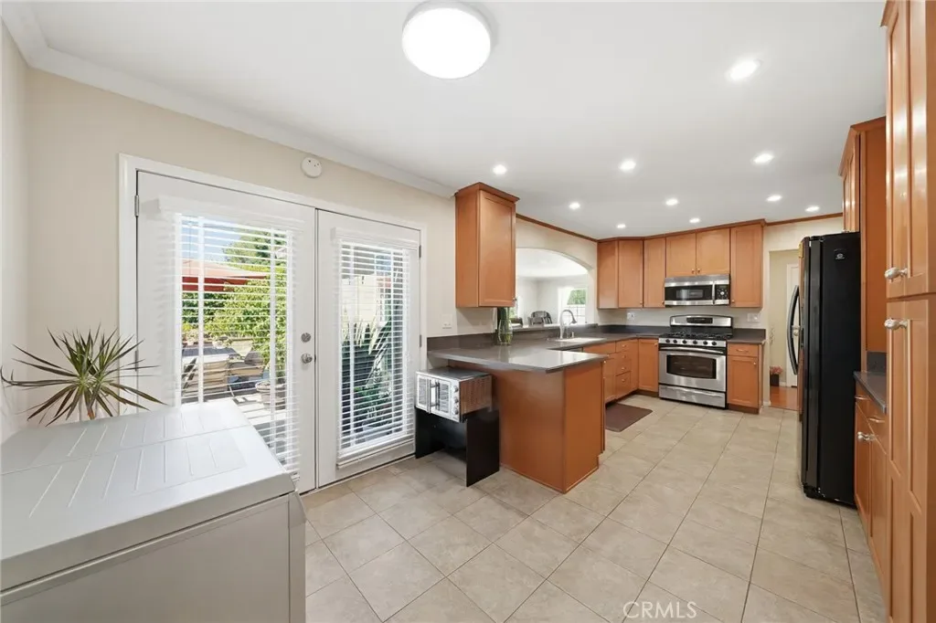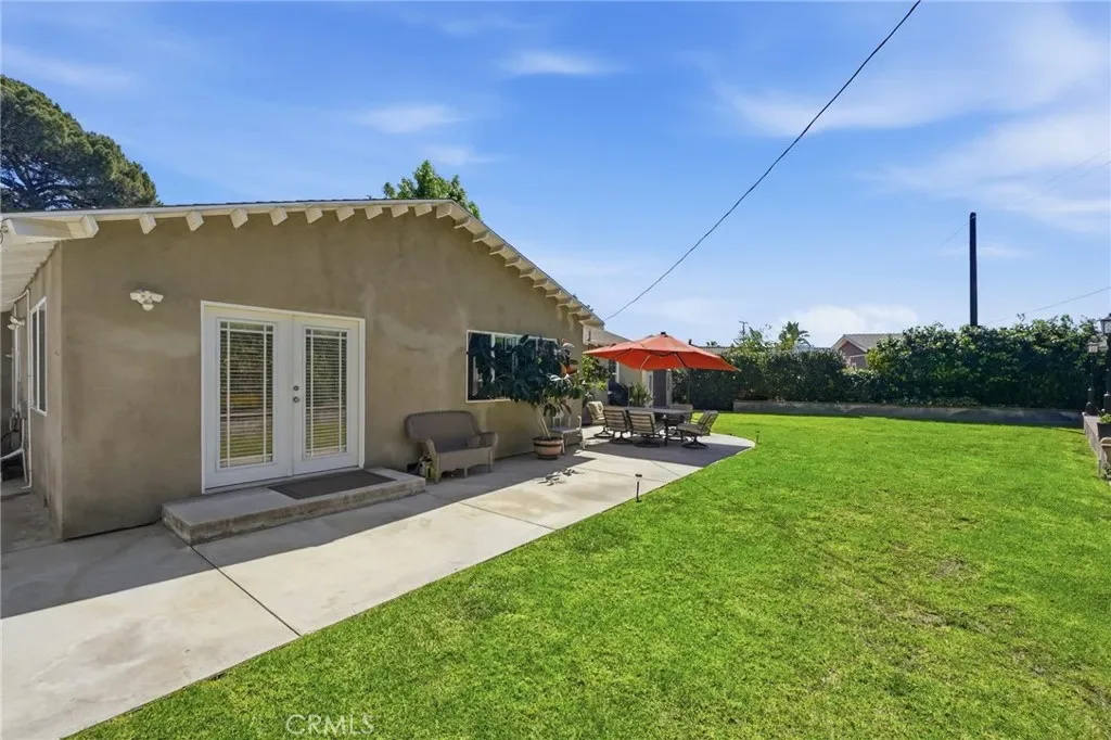 An expansive open-concept layout unfolds into a grand family room, where elegant double doors create a striking transition to the outdoor living space. Designed for effortless indoor-outdoor living, the lush backyard and inviting patio provide a tranquil setting ideal for both intimate relaxation and upscale entertaining.