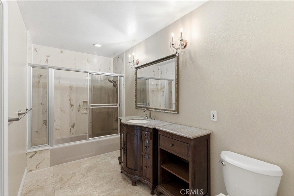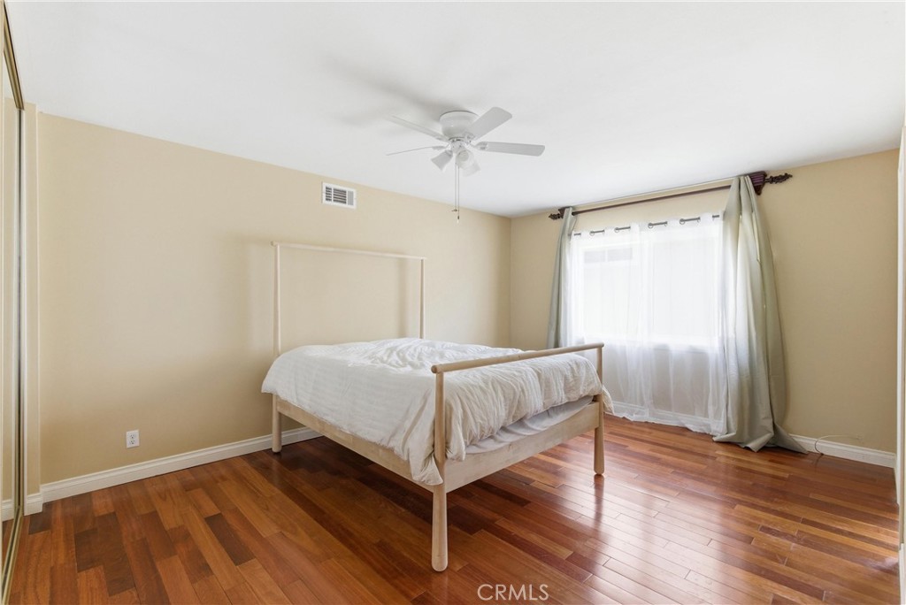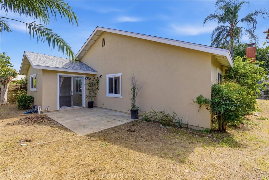 This beautifully upgraded and thoughtfully designed five bedroom, three bathroom home where comfort, space, and function come together seamlessly. Double entry doors create an inviting first impression, and inside you will find a timeless blend of travertine tile, rich hardwood flooring, upgraded 5 inch baseboards, raised panel doors, recessed lighting, and custom paint. Vaulted ceilings with beam accents and two skylights bring in abundant natural light and create an open, airy feel throughout. The kitchen is the heart of the home, featuring a large center island with a sit up counter, granite countertops and slab backsplash, stainless steel appliances, pendant lighting and updated warm wood cabinetry. Just off the kitchen, a formal dining area offers an inviting setting for gatherings, while the adjacent family room adds even more space to relax, anchored by the second of two fireplaces and an elegant chandelier that elevates the room. Off the family room is a bonus media room, home office, or exercise room with sliding door access to the spacious side yard, adding another layer of versatility and space. This home offers a flexible layout with five bedrooms including two true primary bedrooms, ideal for multi generational living, guests, or a private work from home setup. The converted living area functions as an additional bedroom with a fireplace and direct access to an ensuite bathroom with a walk in shower. One bedroom also features a built in desk, perfect for homework, crafts, or a home workstation. The first primary bedroom offers ample closet space, including 8 foot mirrored closet doors and a bonus double door spaced second closet. The second primary suite is huge, with double door 8 foot high mirrored doors and an additional space where another closet could be added if desired plus a sliding door to the tranquil backyard. Practical details continue with washer and dryer hookups in a dedicated space and the direct access 2 car garage, plus extra garage storage for tools, gear, and seasonal items. Major upgrades include dual pane windows, a newer roof, water heater, HVAC, and a paid off Tesla solar system with a battery pack for long term efficiency. Ideally located next door to Glenview Elementary School and down the street from Esperanza High School, with quick freeway access and minutes to shopping, dining, and entertainment, this home delivers the space you want and the lifestyle you need.
