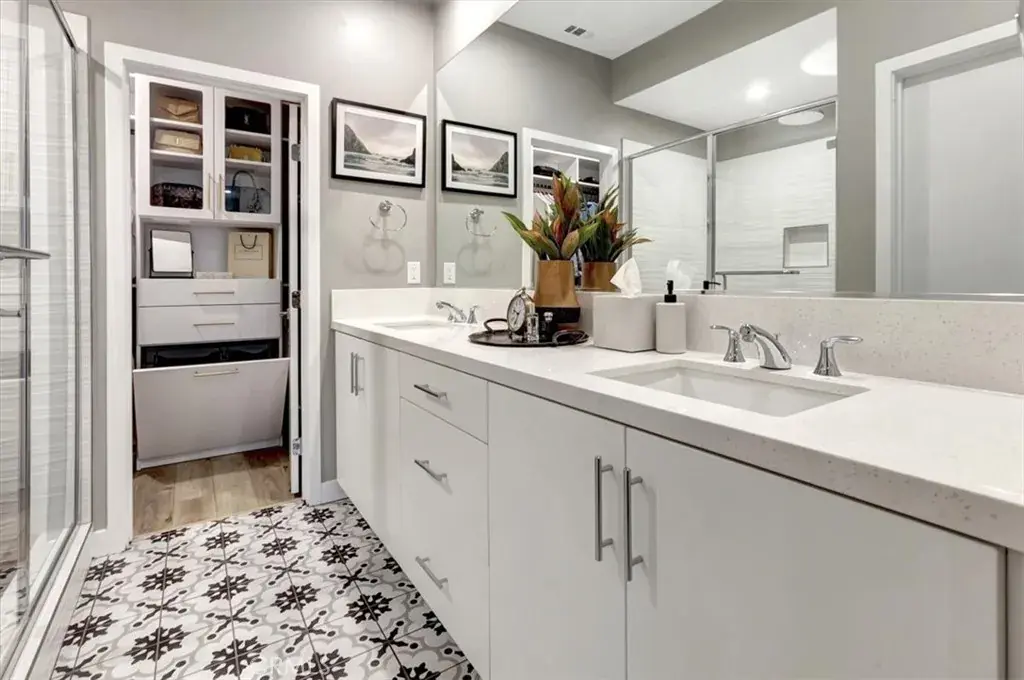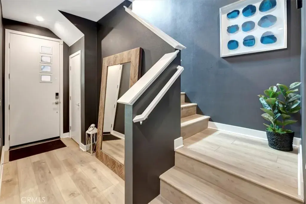 Modern Elegance Meets Effortless Comfort in the Heart of Anaheim! Step into a stunning blend of luxury, style, and smart design in this beautifully appointed 3-bedroom, 3.5-bathroom home, where every detail has been carefully curated for modern living. Nestled just minutes from the iconic Packing House and the magic of Disney, this residence offers the perfect fusion of sophistication and convenience. From the moment you enter, you’ll be captivated by the open floor plan bathed in natural light, accentuated by designer Sherwin Williams’ paint, LED recessed lighting, and stylish LVP Provence Moda Living “At Ease” flooring that flows seamlessly throughout the home. The gourmet kitchen is a dream, featuring sleek quartz countertops, custom tile backsplash, and luxury finishes that elevate everyday living. Retreat to the spa-inspired primary suite, where a Hydrorail Shower with a 10” Rainhead promises indulgent relaxation along with a custom walk-in closet! All bedrooms are pre-wired for TVs and the primary bedroom is adorned with remote-controlled custom window treatments from The Shade Store in Fashion Island, adding both function and elegance. Thoughtful upgrades abound—from Restoration Hardware and Arhouse chandeliers that dazzle above, to the added custom linen cabinetry and the full interior insulation package for year-round comfort. The 2-car garage boasts an EV charger and epoxy flooring, and the roof has solar panels, ensuring both eco-conscious and future-forward living. Enjoy a suite of luxury amenities, including a pool, spa, two dog parks, barbecue areas, recreational grass areas, and walkable paseos throughout the community. This home is more than just a place to live—it’s a lifestyle. Head up to the private rooftop deck to take in panoramic views, entertain under the stars, or enjoy your morning coffee in complete serenity. With close proximity to The Honda Center, Angel’s Stadium, vibrant dining, shopping, and entertainment, you’ll find yourself perfectly situated to enjoy the very best of Southern California! Sellers are also willing to repaint the home white, or offer a credit to have the home repainted if the buyers do not want the charcoal walls.