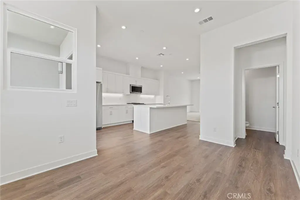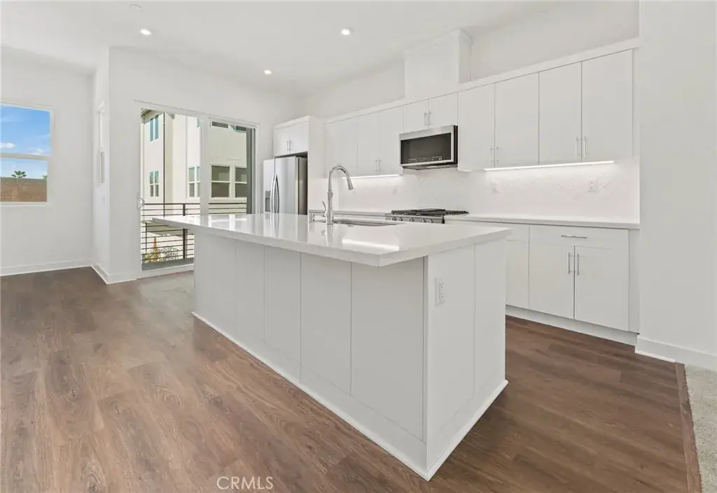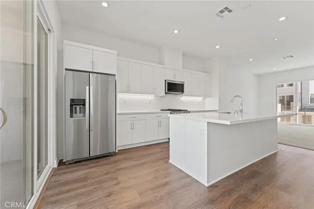 Located within the desirable, gated 100 West community built by renowned builder Toll Brothers is a four story home that boasts modern designs. First level consists of a downstairs bedroom and bathroom. Main level holds the open concept living area. Kitchen is complete with gorgeous white cabinetry and center island. Two patios on the main level allow for an enhanced indoor/outdoor flow. Third level features the luxurious master suite as well as remaining bedrooms. Windows throughout allow for sunlight to pour in, bringing in a plethora of natural lighting. Residing on the upmost level is a roof top deck that is perfect for entertaining guests. Additional highlights include two car garage, gated community, and many more. Centrally located within the heart of Orange County, this home is minutes away from Disneyland, Angels Stadium, Honda Center, shopping, and dining. This home allows for the lively Anaheim lifestyle, all while offering both comfort and convenience.
