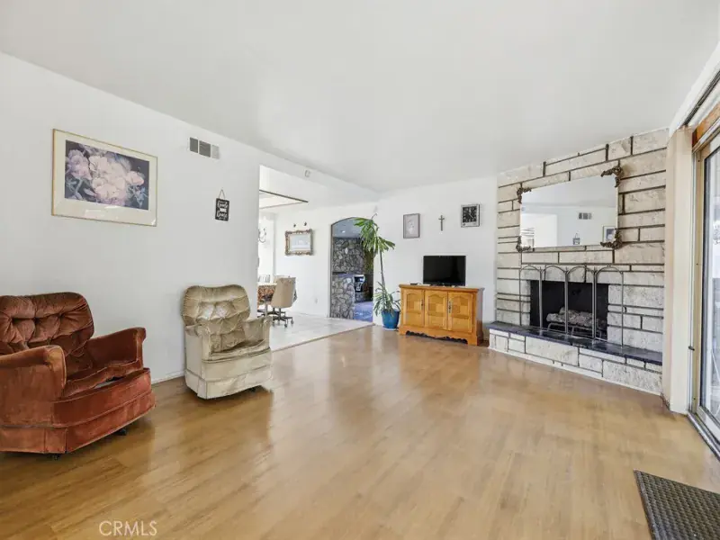 Welcome to this expansive single-story Anaheim home, ideally situated near Disneyland and the Anaheim Convention Center. Set on a generous 10,115 sq ft corner lot, this 2,878 sq ft home offers exceptional space, versatility, and thoughtful upgrades, perfect for multi-generational living or extended household needs. The home features 5 bedrooms and 4 bathrooms, including two primary suites, with one set up as an in-law style floor plan with its own private entrance, providing excellent separation and privacy. An additional bonus room with its own bathroom offers endless possibilities as a game room, playroom, home office, or possibly convert it to an additional 6th bedroom. Designed for both comfort and entertaining, the property boasts a full custom stone wet bar, two gas fireplaces located in the living and family rooms, and a large family kitchen with abundant cabinetry, center island, and plenty of room for a sizable kitchen table. Skylights fill the kitchen with natural light, while tile flooring adds durability to the kitchen and bathrooms, and wood laminate flooring enhances the living and family rooms. Recent improvements include a new roof installed in 2024, fresh exterior paint, updated copper plumbing, and six newer retrofit windows. Central air conditioning and heating ensure year-round comfort. The attached garage with direct access adds everyday convenience. Outdoors, the fully fenced front yard maximizes usable space, and includes potential for RV parking. In the backyard, mature fruit trees, including apple, papaya, lemon, and persimmon, create a lush, welcoming setting. Currently utilized as a room-and-board business, this property offers incredible flexibility and potential in a prime Anaheim location. A rare opportunity to own a spacious, well-maintained home with endless possibilities.