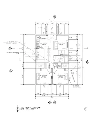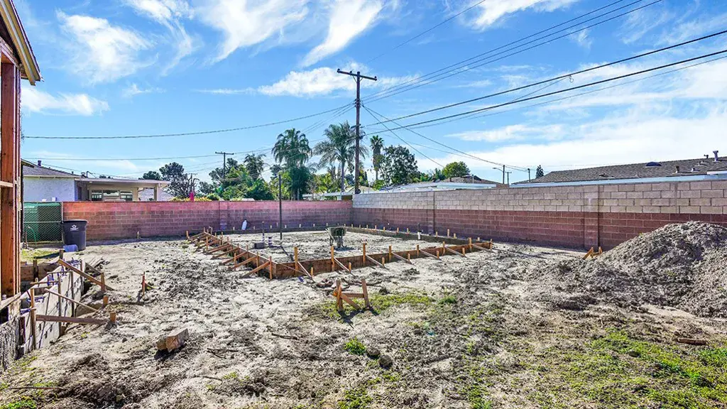 The plans also include a detached ADU, approximately 795 sq ft, designed as a 2 bedroom, 1 bathroom unit. The ADU plans are fully approved by the City of Anaheim and the foundation is prepped and ready for concrete pour.