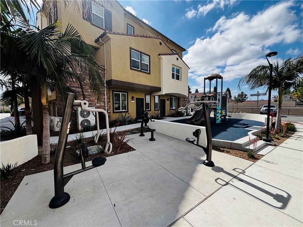 Welcome to this beautiful new end-unit townhouse offering style, functionality, and comfort! The main level features a spacious living room, dining area, kitchen and half-bath. The all-white kitchen offers quartz countertops and an island for food prep & breakfast bar. Primary bedroom has recessed lighting, mirrored closet doors and carpeting along with an ensuite bath with quartz countertops. There are two additional guest bedrooms with closets and an adjacent shared bath. Enjoy the private balcony for a morning coffee or a glass of wine at sunset. The unit includes a Samsung refrigerator, washer/dryer and features a two-car garage with EV charger and direct access to the home. Located close to dining, shopping, entertainment parks and a convenient commute to both Orange & LA County. Come see all that this fine townhome has to offer!