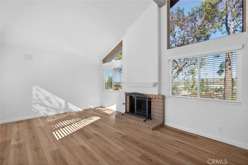 Beautifully remodeled home with 180 degree views of the Santa Ana mountains. Anaheim Hills This Rancho Yorba home offers almost 1600 square feet of living space, with floor to ceiling windows, and views from every angle. Private courtyard entrance, open the front door to very inviting living room, complete with cozy fireplace. Dining Room space, downstairs half bath, and then the WOW kitchen. The view from your kitchen sink is amazing! The kitchen is completely new, cabinets; counters and appliances, as are the baths/ vanities. New laminate flooring throughout, new baseboards, new paint. Double pane windows and sliding glass door. The kitchen has a large eating/ living/ office space attached. Up the staircase with floor to ceiling windows to the Primary bedroom and one other spacious bedroom. Two car attached garage with access to the courtyard. Even the garage has a view! The community includes a pool and clubhouse, close to schools, shopping, restaurants, parks and fwys. This is an attached single family residence that is an end unit and has only one attached wall.