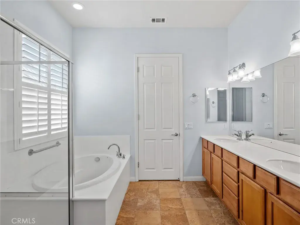WELCOME HOME !! Gorgeous 2007 Sequoia Model located in the desirable DEL WEBB 55+ Community in Apple Valley! Inside, you’ll find 10-FOOT CEILINGS that create a bright and open feel, complimented by STUNNING PLANTATION SHUTTERS for timeless style and privacy. The spacious layout includes a beautiful GOURMET KITCHEN WITH DOUBLE OVENS, breakfast nook, center island and plenty of cabinets – perfect for everyday living and entertaining. The large Living room with COZY FIREPLACE and LOVELY LAMINATE WOOD FLOORING! The spacious master suite with master bath that has LARGE SOAKING TUB AND SEPARATE SHOWER, dual sinks and LARGE WALK-IN CLOSET! Just off the main living area is a BEAUTIFUL SUNROOM with lots of windows, a perfect spot to enjoy your morning coffee or unwind in the evening. The laundry room is both practical and spacious, offering plenty of storage for linens and towels and also INCLUDES WASHER AND DRYER.