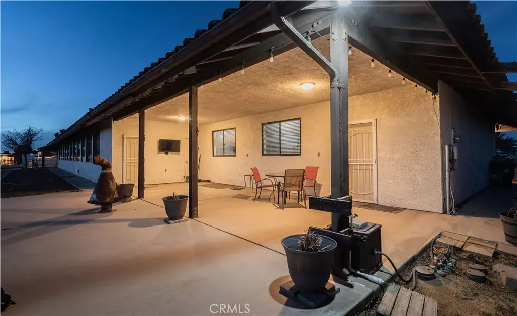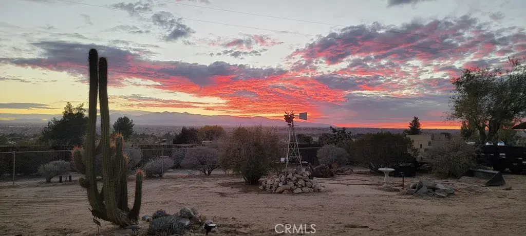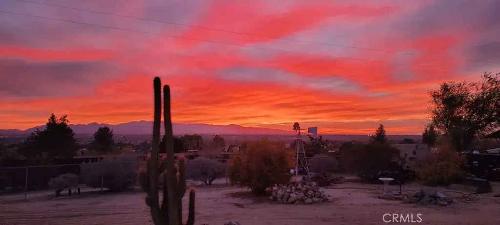 Wonderful 5 bedroom, VIEW home located in one of Apple Valley’s most sought-after neighborhoods! An impressive porte-cochere and professionally designed drought-tolerant desert landscaping set the stage for lovely curb appeal. This home also comes with an extra tall, finished, 6 car garage (maybe more depending on the size of the cars). Upon entry you are greeted by a spacious foyer and a bright, oversized formal dining that could easily function as a formal living room or even an office! The expansive great room/living room two oversized sliding glass door (that lead to an incredible FLEX room) with a double-sided fireplace as its centerpiece. This space flows seamlessly into the open concept kitchen complete with large breakfast bar, tons of cabinets, custom lighting and a little office area as well – additionally, there is a “pantry room” separate of the kitchen…a chef’s dream for sure! Four great sized bedrooms all with large windows letting in lots of natural light! Large primary suite has it’s own walk in closet and large bath with step in shower and oversized vanity area! The primary bedroom also has direct access to the FLEX room! Let’s talk about the FLEX room….this room runs the length of the back of the home….it has its own dedicated evap cooler and two hydrophonic heaters! You can access this amazing possibility room from the garage, living room and primary suite! AI generated photo attachments will show just some of this FLEX room possibilities! The Westerly views off the back of this home are absolutely stunning!! Currently there is 1 car garage/mancave in the backyard that also has a ton of possibilities – perfect spot for an income producing ADU as well! The garage is literally a dream garage with its 8 foot doors, two openers, finished wall and could possibly hold 6 – 8 cars depending on the car sizes….garage even has its own hydrophonic heater too! Large indoor laundry, convenient guest 1/2 bath, newer central heat/air unit, tons of storage thru out, situated on just over 3/4 acres and much more!! Take a look today!