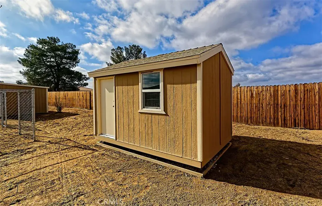 The primary bedroom includes a desirable walk-in closet offering generous storage. Additional upgrades include a new A/C compressor, ensuring comfort and efficiency during the High Desert Summers. Step outside and enjoy a covered back porch perfect for relaxing or hosting gatherings. A spacious back yard offers a grassy lawn, two storage sheds, dog kennel, a fire pit and plenty of room for outdoor enjoyment. There is additional parking in the back yard large enough for an RV with additional RV hook ups along with a oversized garage that allows flexibility for recreational vehicles, trailers or additional storage needs.