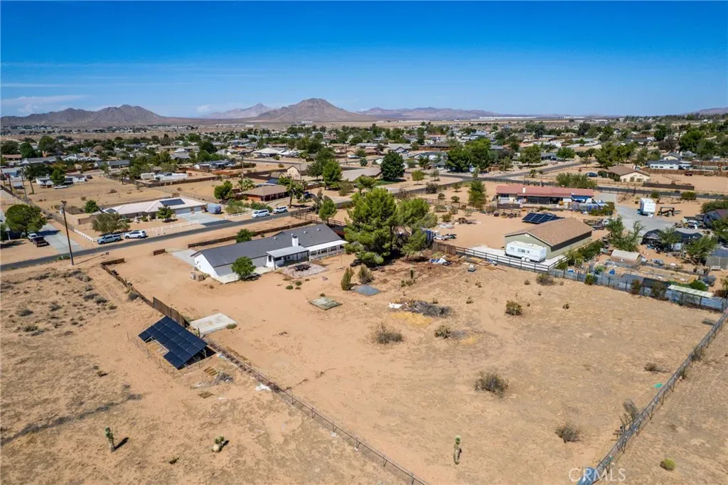 Set on 2.5 acres of open desert framed by stunning mountain vistas, this renovated Sycamore Rocks ranch offers space, serenity and limitless possibilities! Offering the rare combination of privacy, space and modern upgrades, this single level home delivers the true essence of relaxed country living. Inside an abundance of windows fills the home with natural light, highlighting a thoughtfully designed floor plan where living spaces feel open, yet comfortably defined. Ideal for both entertaining and everyday living. The inviting fireplace creates a warm focal point for cozy desert evenings. The updated open kitchen features sleek quartz countertops, a farmhouse sink with lots of custom cabinetry offering both beauty and functionality. Stylish vinyl plank flooring extends throughout the main living areas, while soft carpeting enhances comfort in the three bedrooms. The primary suite offers a tranquil retreat with spacious bathroom that includes a water closet, soaking tub, dual vanities, dressing area and generously sized walk-in closet. An oversized garage includes a versatile bonus room-ideal for a creative studio/workshop/gym or additional storage with the option to easily restore the full garage space. With 2.5 acres of usable land, the possibilities are endless: build an ADU, accommodate RV parking, create horse facilities, install dog runs or design your own desert retreat! Energy-efficient solar is already in place with an easily transferable loan (or seller to payoff with full price offer) offering significant savings compared to traditional utility costs. Surrounded by sweeping desert skies and majestic mountain views, this property offers a rare opportunity to experience peaceful country living with limitless potential…come on by and you will see why!