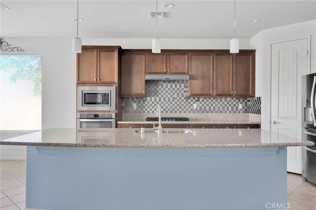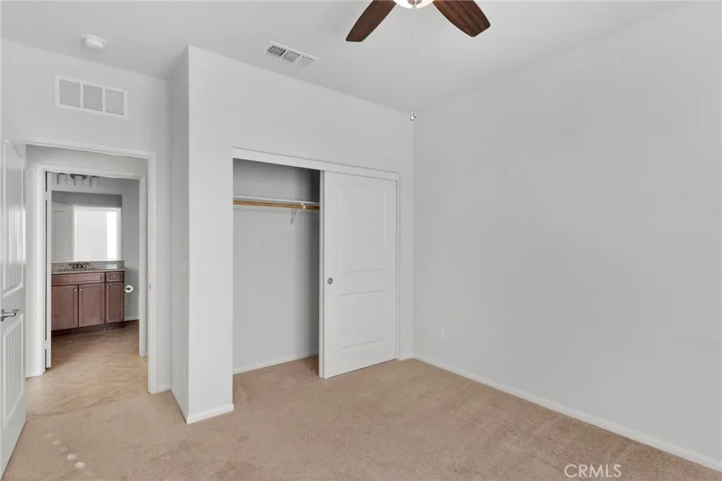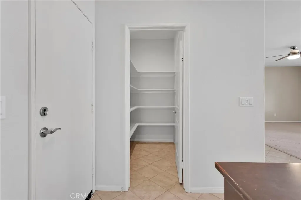 Come see this stunning true 3-bedroom, 2-bath Haven model located in the heart of the premier active-adult 55+ community of Sun City by Del Webb. This is one of the few floor plans offering three full bedrooms, plus an abundance of upgrades throughout. Step into a model-like home featuring soaring ceilings and tile flooring throughout the main living areas (with carpet in the bedrooms and living room for added comfort). The kitchen is the heart of the home, showcasing a large center island that overlooks the family room and dining nook—perfect for entertaining. Enjoy stainless steel appliances, custom granite countertops, a unique backsplash, and the rare bonus of two spacious walk-in pantries/utility closets providing exceptional storage. The split floor plan offers both privacy and functionality. The primary suite is generously sized and features a luxurious ensuite with a separate soaking tub, walk-in shower, private water closet, dual-sink vanity, and a massive customized walk-in closet with built-in cabinetry for optimal organization. The secondary bedrooms are also spacious, making them ideal for guests, hobbies, or visiting family. Step outside to your low-maintenance private backyard oasis, complete with additional concrete, artificial turf, and an extended Alumawood patio cover that provides shade in the mornings and evenings—perfect for enjoying outdoor living year-round. Additional highlights include an extended garage with built-in storage, offering even more room for tools, golf carts, or projects. Indoor laundry room with sink and extra cabinetry.