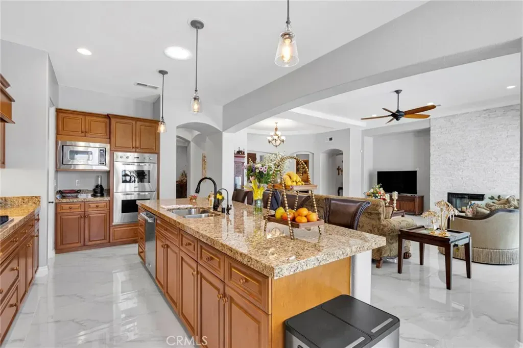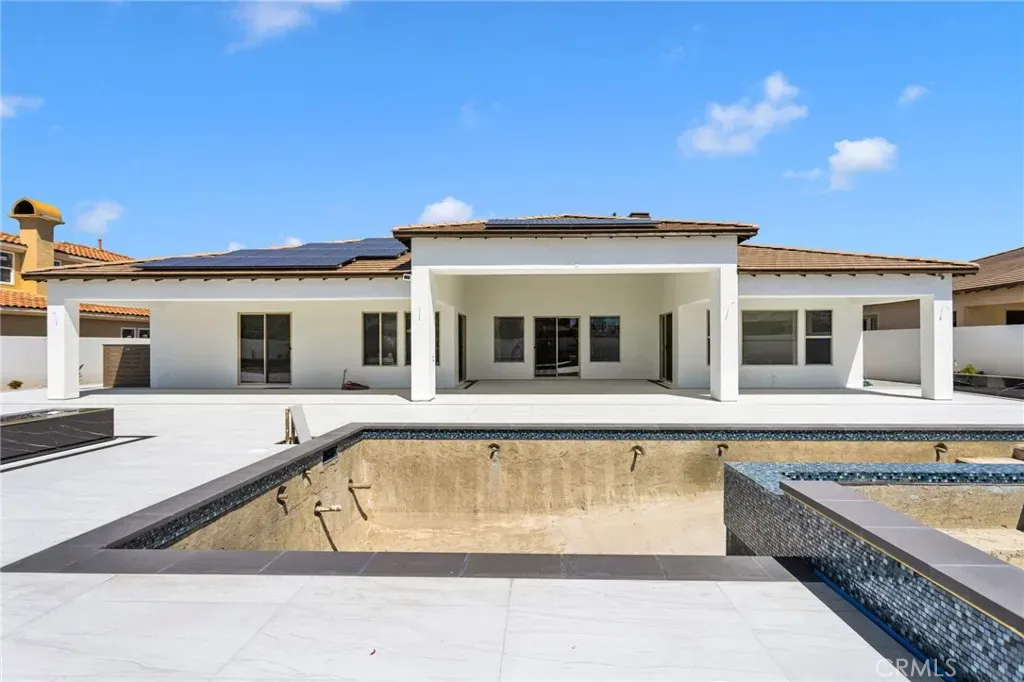 Exceptional residence in the prestigious gated community of Stonebrook Estates. Spanning 3,351 sq ft, this beautifully upgraded 3-bedroom, 3.5-bath home with a 3-car tandem garage offers refined living designed for both everyday comfort and unforgettable entertaining. At the heart of the home is a chef-inspired kitchen featuring Viking appliances, granite countertops, an impressive 11-foot breakfast bar, double ovens, and extensive cabinetry, all flowing seamlessly into a stunning family room anchored by a floor-to-ceiling stone fireplace. Each bedroom is a private retreat with its own en-suite bath, while the primary suite offers a separate sitting area perfect for a home office or lounge, along with a spa-inspired bathroom complete with a soaking tub, walk-in shower, dual vanities, and a custom closet suite with convenient built-ins. The backyard presents a rare opportunity to create your own resort-style escape, with a full-length covered patio and an in-ground pool and fire pit already underway, ready for your personal finishing touches. Additional highlights include PAID SOLAR, EV charger, marble-look tile flooring, and a well-appointed laundry room with exterior access.