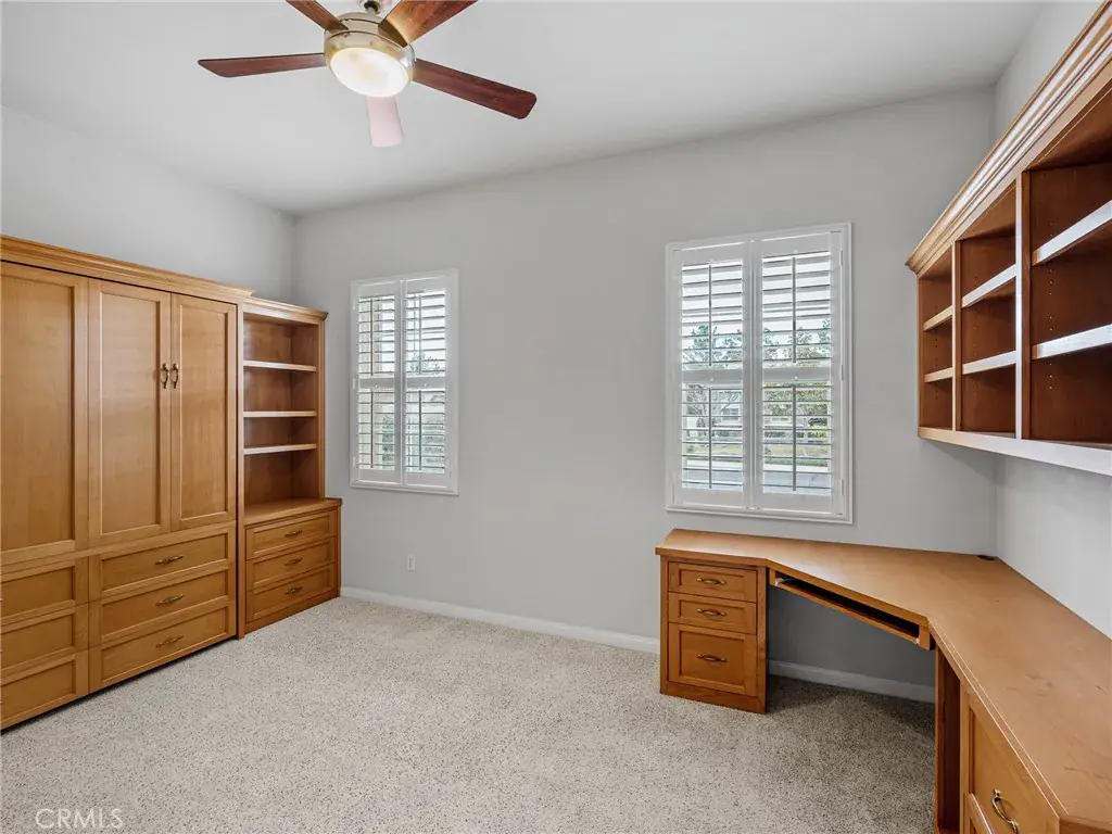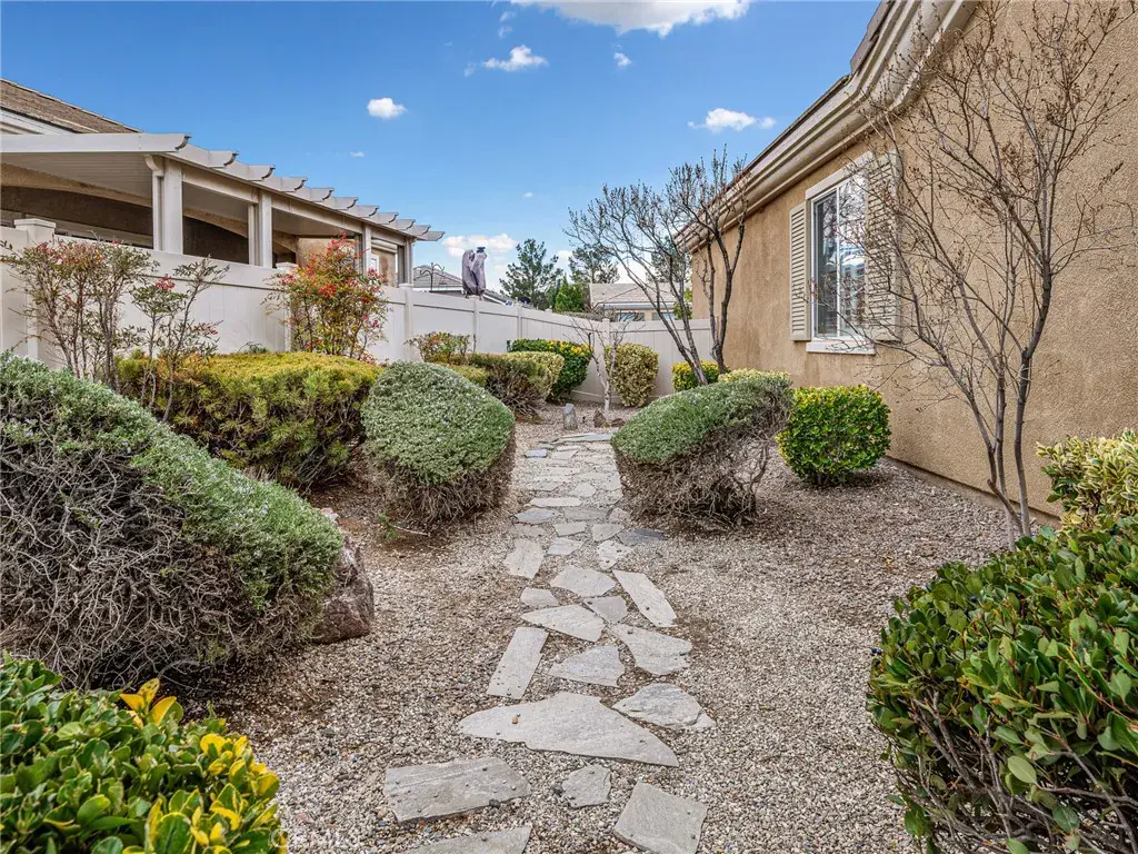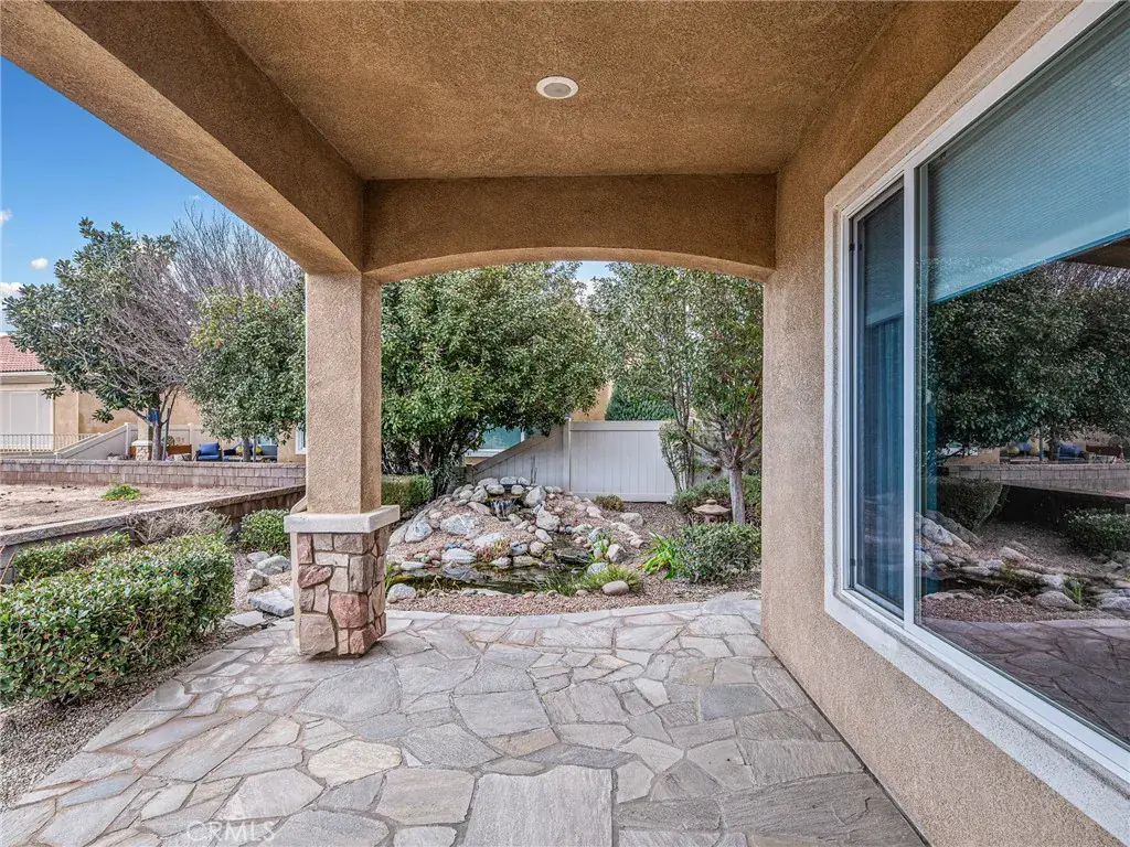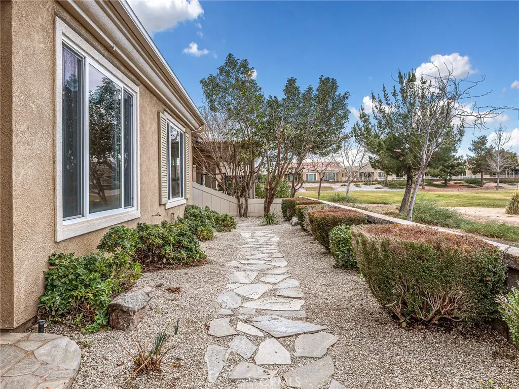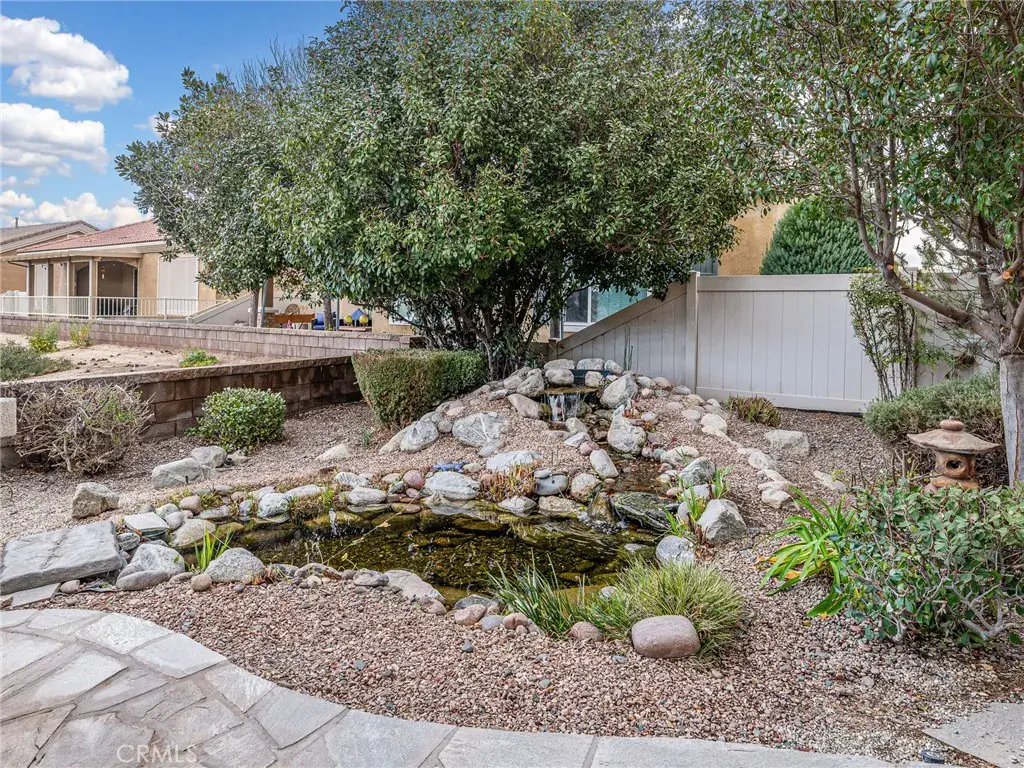 Welcome to Jess Ranch, a premier 55+ community in beautiful Apple Valley! Step into paradise with this spacious 1870 sq ft split-floorplan home designed for comfort, privacy and easy living. From the moment you enter the inviting foyer, you’ll appreciate the pride of ownership throughout this well-maintained 2 bedroom, 2 bath, office or 3rd bedroom residence. The open living and dining areas provide plenty of space for gathering, while the cozy fireplace creates the perfect setting for relaxing evenings on the chilly winter night. The large kitchen offers plenty of cabinetry and workspace, ideal for preparing meals or entertaining guests. Just as you enter from the garage, you’ll find a convenient laundry room complete with washer and dryer for added functionality, a sink and plenty of cabinetry for storage. The private primary suite features a generous walk-in closet, a large free standing tub, a separate shower – your own peaceful retreat at the end of the day. On the opposite side of the home, two additional rooms, 1 bedroom with a built in desk or office and 1 bedroom with built in cabinets with a Murphy bed and desk offering flexibility for guests or your hobbies. Then step outside to your backyard retreat, complete with a tranquil koi pond and soothing cascading waterfall. Surrounded by lush plants and shrubs, it’s the perfect spot to enjoy your morning coffee, afternoon snack or dinner under the sky – and just in time to take in a stunning High Desert sunset. You can even take the afternoon and go do some shopping as you will see plenty of choices to choose from or maybe even a movie all located at the entrance of Jess Ranch.This home offers more than just space — it offers a lifestyle of comfort and tranquility in beautiful Apple Valley. Move in ready come see this beautiful home waiting for new owners to make it their castle.
