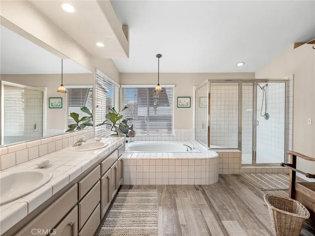 Inside, you’ll find new wood-look tile flooring throughout and a remodeled kitchen with modern finishes and a bright breakfast nook overlooking the lush, manicured yard. The spacious floor plan features two main suites, ideal for multi-generational living or guest accommodations, a cozy family room with a brick fireplace, and formal living and dining rooms for gatherings and special occasions.