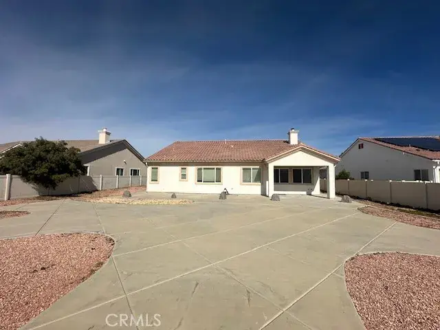 The Estates @ Apple Valley Gated Community offers this great condition 5-bedroom and 3-bath with UPGRADED Kitchen cabinets, appliances, and Quartz kitchen countertop. Nice Fireplace in the Family Room. Convenient indoor laundry room with a sink and walk-in pantry. Main Bedroom has walk-in closet and other bedrooms have mirror closet doors. Two bathrooms with walk-in shower. Covered front Proch and back Patio ideal for relaxation. Desert rock landscape savings to water bill. Attached 3-car garage with cabinets for additional storage space. Located adjacent to the Ashwood Golf Course and close to Jess Ranch Marketplace shopping & national franchise restaurants. Hurry!