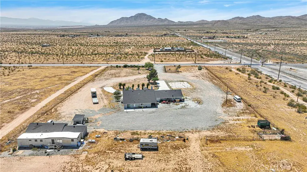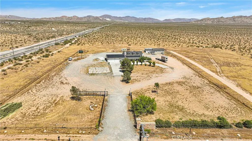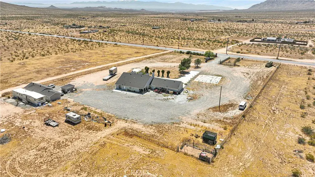 Own your own ranch in North Apple Valley. This home is located on over 9 acres of land (partially fenced), has views in all directions. Main house offers a huge living room with fireplace, a 3 car garage, a formal dining room, and a spacious kitchen and a LARGE ISLAND! Back house offers 1,100 sq ft of living space; 2 bedroom 2 bath. This property is in the specific plan for Apple Valley’s Commercial / Industrial Development. Less than a mile from the Walmart Distribution Ctr and Big Lots Dist., approx 1 mile from BrightLine train (coming soon) and the 15 freeway.