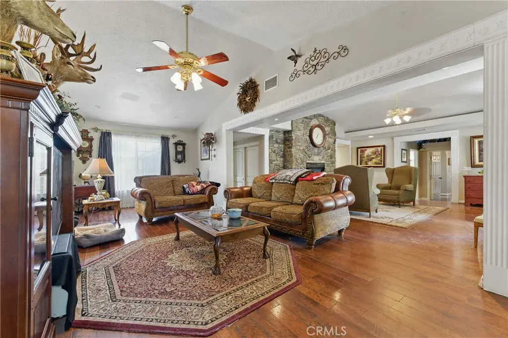 OPPORTUNITY KNOCKS!! An entire family complex with 5 acre fenced gated land. 1 Main house with POOL/SPA and 5 separate ADU’s!! Private Lake with Island & rock waterfall, Movie Theater, and much more!! An excellent property for multiple family living together! Short Term Rental opportunity: turn this property into a bread and breakfast, retreat/worship center, Kids Camp, or an excellent Airbnb property!! Main house has 4 bedrooms, 3 bathrooms, 5,012 Square Feet of spacious living space. Grand entryway into the foyer and huge real rock grand fireplace. Open concept with a split floor plan. The south wing of the home includes the living room, beautiful kitchen with ample cabinet space and granite countertops, the kitchen opens up into the oversized dining room with a 2nd fireplace, 2 other bedrooms and 2 full bathrooms. The north wing offers oversized laundry room/office which could be utilized as a bedroom, and the 3rd bathroom has a bathtub. The large Primary suite includes a beautiful bathroom with walk-in shower, soaking tub, his/her vanity sink with granite counter tops. The 3rd fireplace is located master suite’s bedroom. A HUGE 1200 Square feet Hall Room with pellet stove, which is great for meetings, large gatherings and entertaining. Inground POOL! Backyard has a gorgeous huge pond stocked with Koi fish and Catfish, surrounded by a well maintained lawn, mature trees, back porches and carports. ADU 1 bedroom and 1.5 bathroom. ADU 2, 3, 4, & 5 has 1 bedroom and 1 bath each. Large 4.24 acre of land is completely fenced with block wall and larger wrought iron gates!! A ONE OF A KIND PROPERTY RARE PROPERTY!! Hurry to make an appointment to view this gorgeous property.