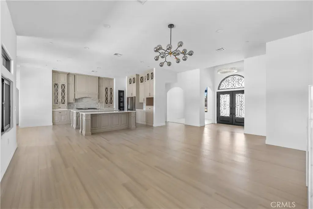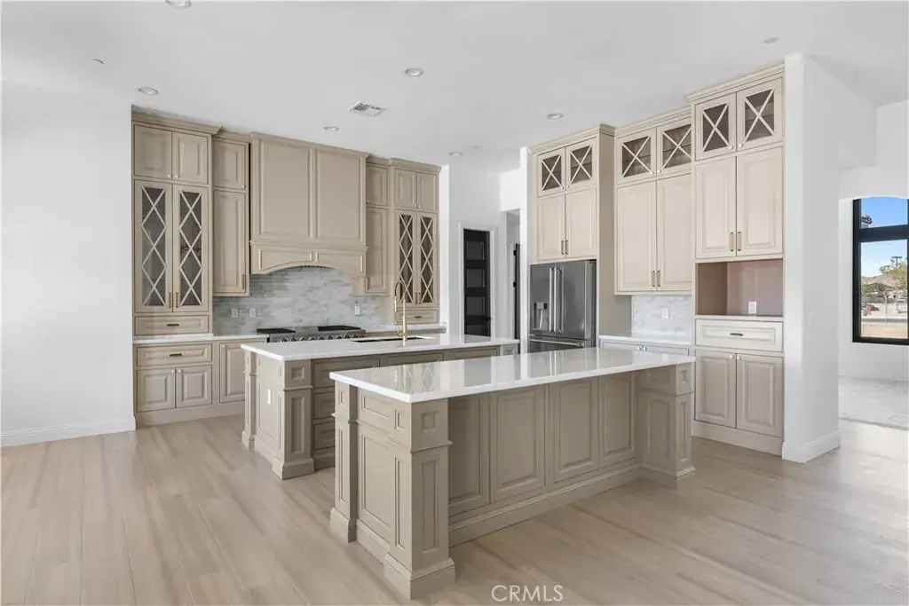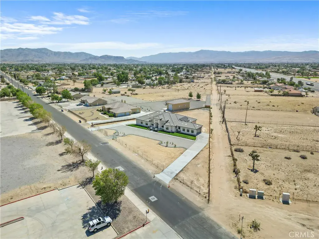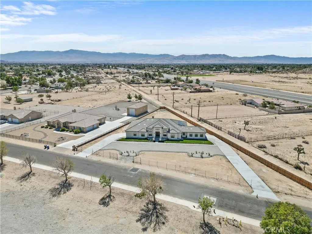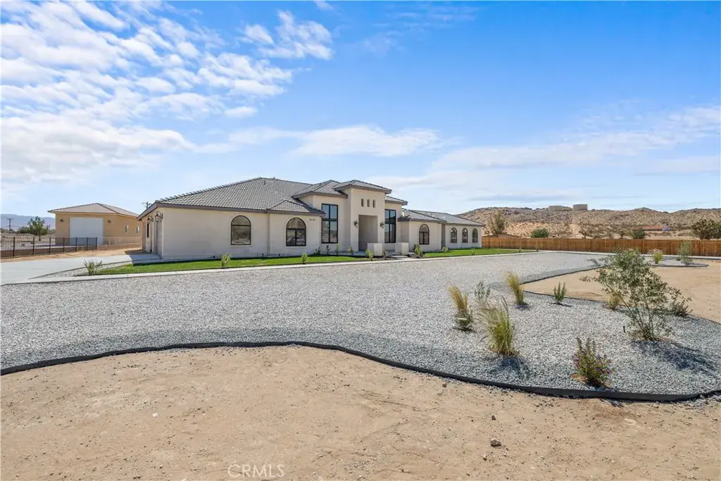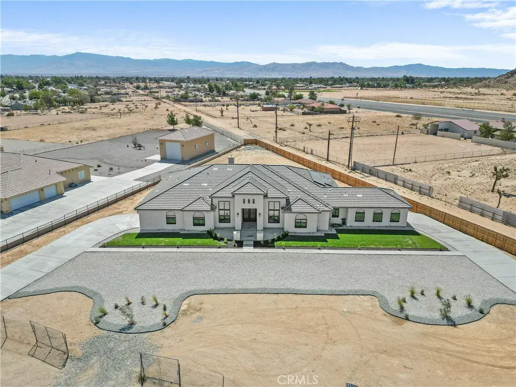 Welcome to 20721 Standing Rock Avenue. This BRAND NEW custom-built residence offers an impressive 3,404 square feet of sophisticated and comfortable living space, showcasing 5 spacious bedrooms, two of them being full bedroom suites, and 4 generously sized full bathrooms. A grand entry with double wrought-iron doors welcomes you to a flawless open floor plan with soaring 13ft and 11ft ceilings throughout the home allowing abundance of natural light. The modern kitchen is truly a chef’s delight with two oversized islands with marble countertops ideal for meal preparation or family gatherings. Custom full cherry wood frame fitting cabinets with soft closing glassed faced doors and dovetail drawers are a hallmark of luxury craftsmanship in this home. Fully equipped with stainless steel high-end Thor appliances featuring a 48 inch six-burner range and matching hood, this chef-inspired kitchen is both stylish and functional. A spacious walk-in pantry offers generous storage. Elegant custom chandeliers as well as recessed lighting illuminate the arched hallways that lead to the bedrooms. As you enter the double doors to the primary suite you’ll find a peaceful retreat with its very own private patio, a spa-inspired bath including an impressive shower, freestanding jet tub, dual vanities and his and her walk-in closets. The interior of this home showcases many upgraded details such as the 8ft solid wood doors throughout and the smoked glass sliding closet doors in the bedrooms. A stand out feature in this home are the large black aluminum, double pane, argon filled insulated, 5 inch framed windows that open and lock automatically from either side with sliding heavy-duty screen. With an oversized, fully fenced back yard you get RV access and endless possibilities to fit your needs. Two immense full concrete driveways lead to a two car garage on both ends of the house, giving you a total of 4 car garage spaces. Both garages are fully finished and feature recessed lighting. This home is equipped with two full AC units and paid off solar! Situated in a prime estate location with paved roads this residence is centrally located within walking distance to shopping, restaurants, community park swimming pool, police and fire station. Nearby shops include Target, Walmart, Albertsons, Ross, amongst many familiar restaurants and the public Apple Valley Golf Course. Great neighborhood and neighbors. Don’t miss the opportunity to make this exquisite property your own!