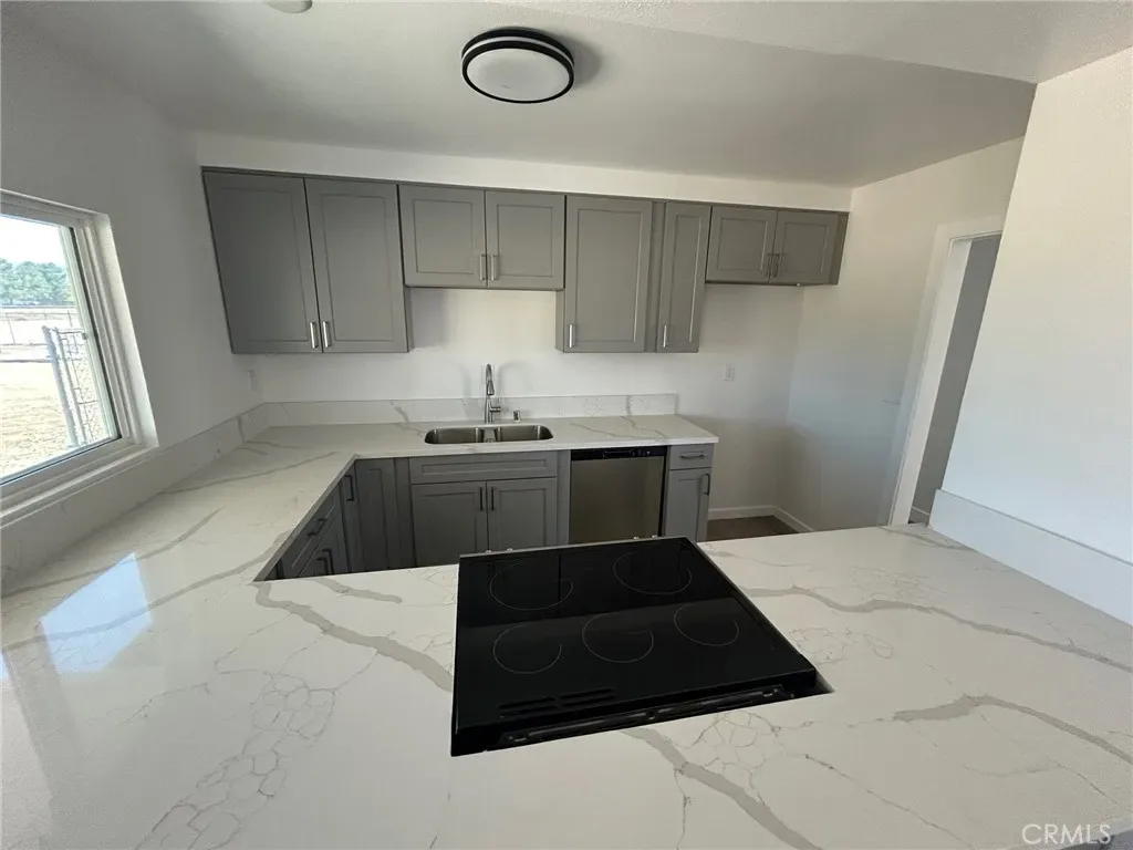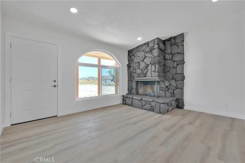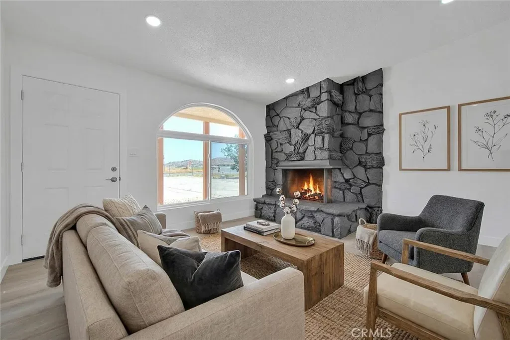 Welcome to this stunning 3-bedroom, 2-bathroom corner-lot home in Apple Valley, situated on over an acre of land. This beautifully updated home features an open floor plan, a cozy rock fireplace, and new luxury vinyl plank flooring throughout. Enjoy the fresh interior paint, modern light fixtures throughout, and a fully remodeled kitchen with brand-new cabinets, quartz countertops, stylish fixtures, and new appliances. Both bathrooms have been tastefully updated, and the home also includes energy-efficient windows, a new AC unit, and a circular driveway. Take in the breathtaking mountain views from this move-in-ready gem.