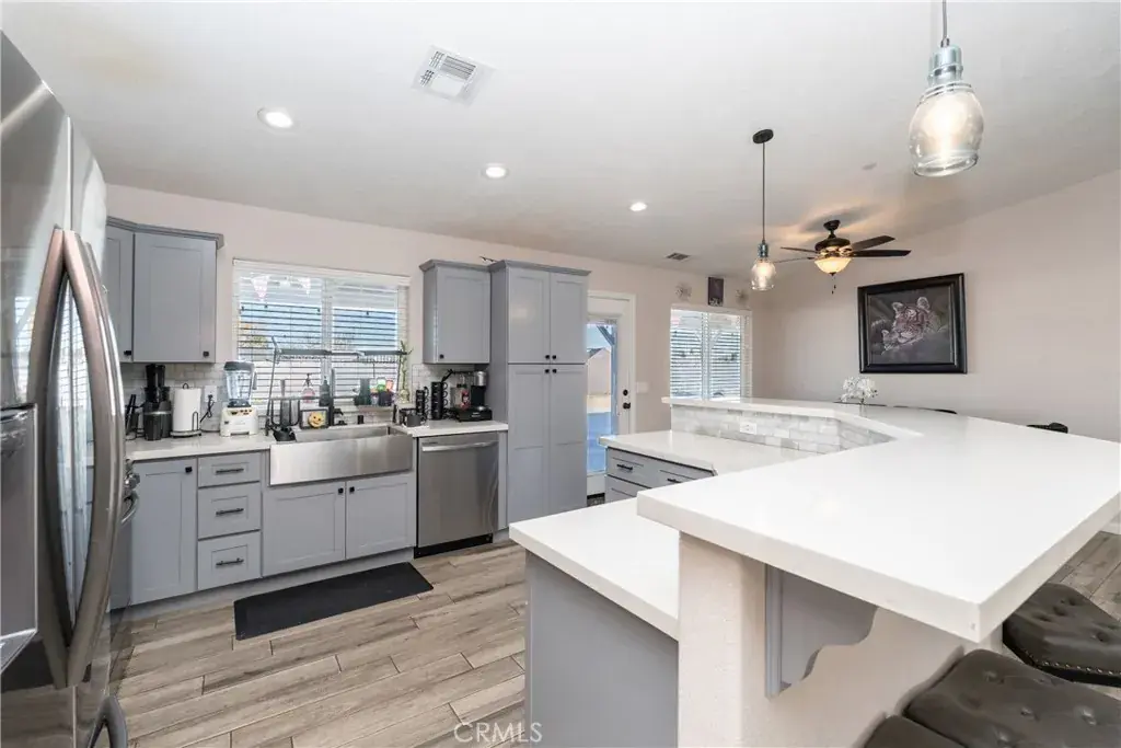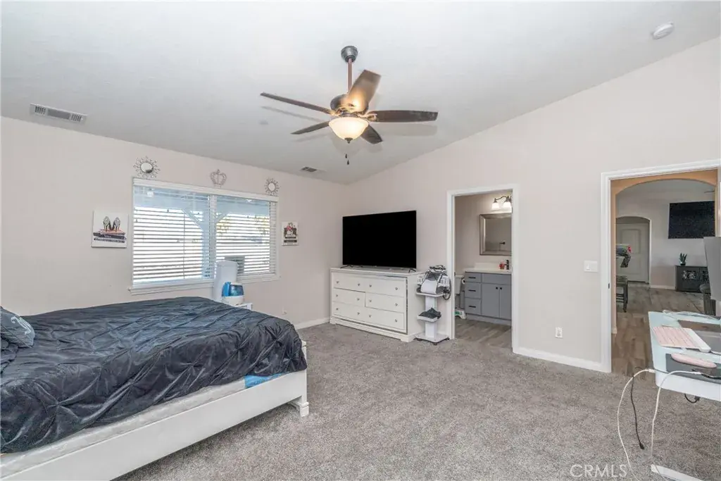Beautifully maintained half acre ranch-style home offering 3 bedrooms and 2 bathrooms, highlighted by quartz countertops and an open-concept kitchen with a large center island ideal for casual dining and entertaining. The spacious bedrooms feature walk-in closets, and indoor laundry adds everyday convenience. The low-maintenance desert-landscaped front yard creates great curb appeal and leads to a two-car garage. RV ACCESS on both sides of the home provides excellent flexibility, while the paved backyard offers plenty of space for a boat, recreational toys, or additional vehicles. This home offers PAID OFF SOLAR. This move-in-ready home combines comfort, functionality, and versatility—an opportunity you won’t want to miss.