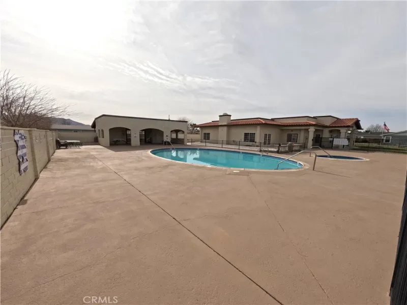 The gated community offers a wide range of amenities including a clubhouse with bingo and social activities, fitness center, pool and spa, shuffleboard courts, fenced and unfenced dog runs, and RV storage (subject to availability). Pet-friendly community. Park approval required. Buyer to verify space rent, park rules, pet restrictions, and community amenities.