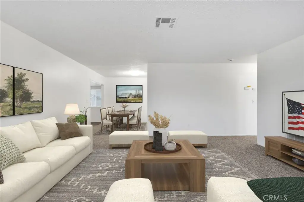 Inside, you’ll find new carpet and fresh interior paint, creating a bright and inviting atmosphere. The kitchen has been tastefully updated with new white cabinets and quartz countertops, offering a clean, modern look and plenty of functionality. The home features both a living room and a family room, providing flexible space for everyday living or entertaining.