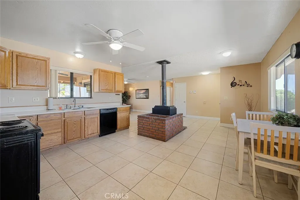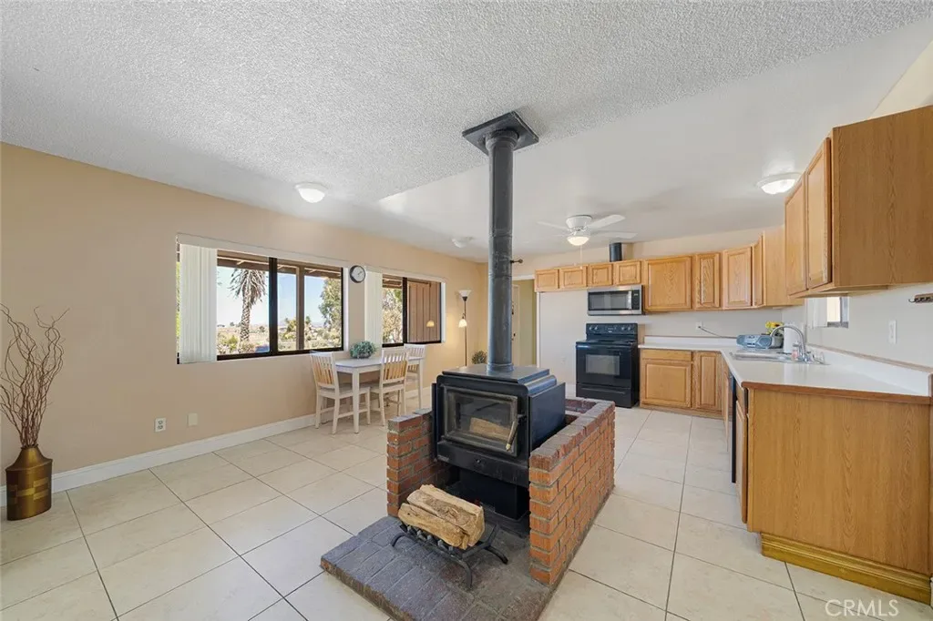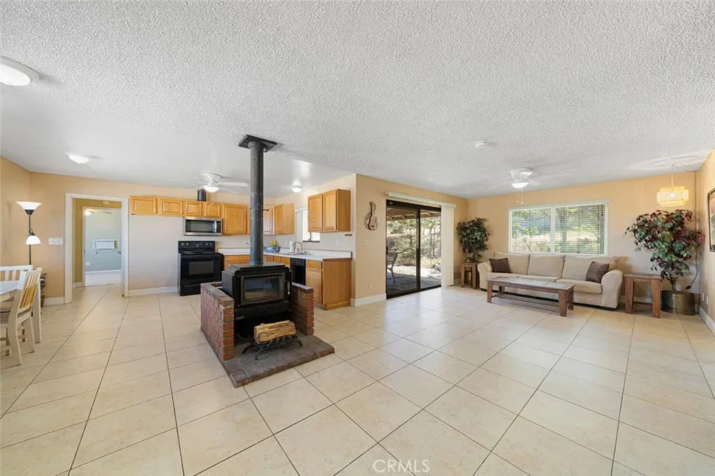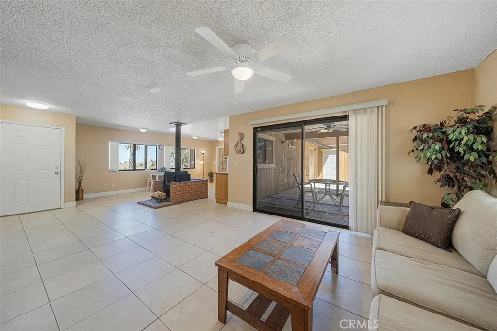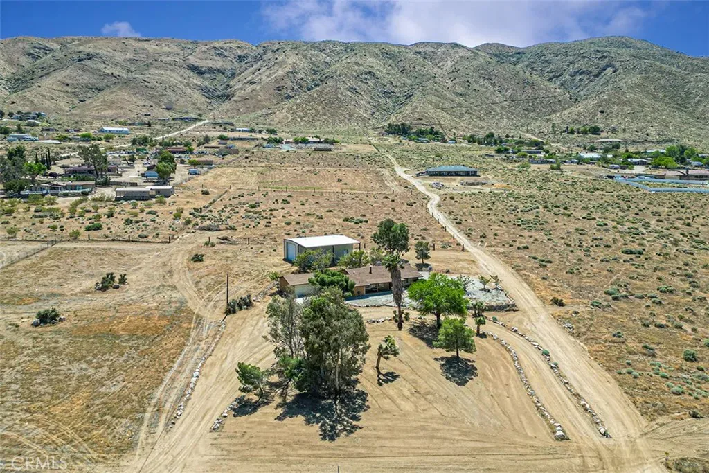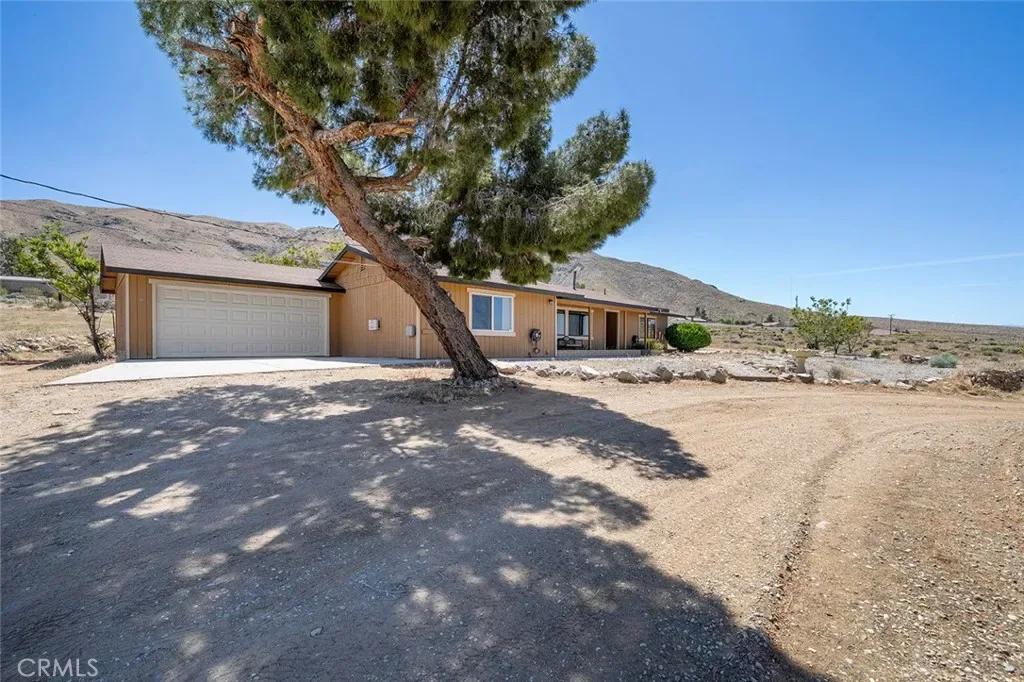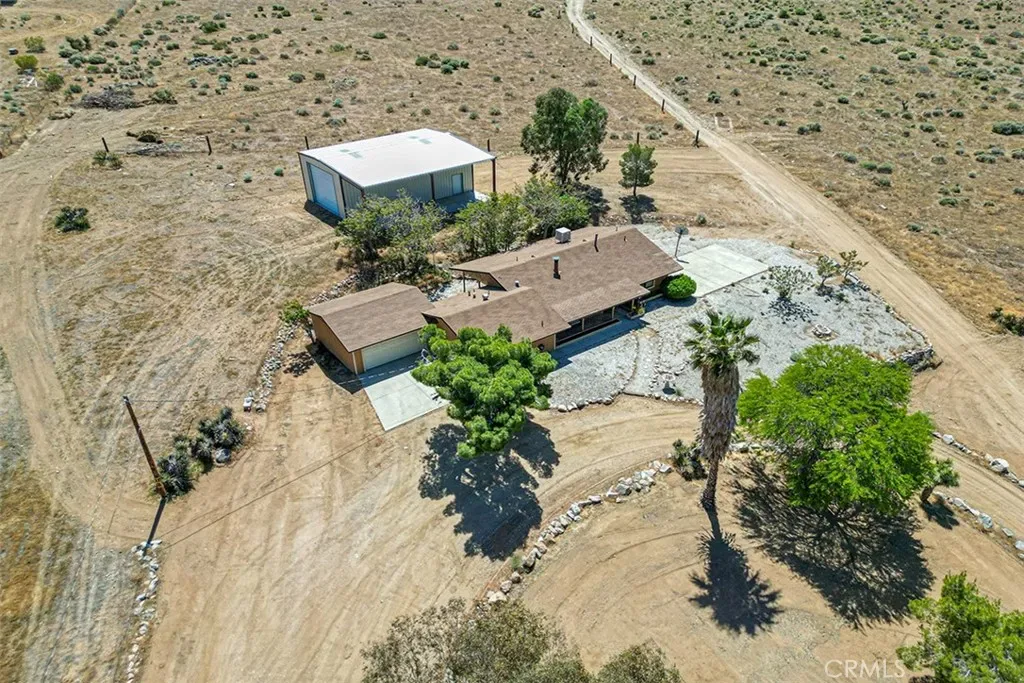 Wow, look at this exceptional location with sweeping, unobstructed views of the mountains and desert terrain, this beautifully upgraded turnkey home offers the perfect blend of comfort, functionality, and lifestyle! Step inside to discover a clean, interior featuring new carpet, neutral paint, dual-pane windows, panel doors and elegant 18” tile flooring throughout the main living areas. The spacious, light-filled living room is anchored by a charming wood-burning stove, creating a warm and inviting atmosphere for relaxing evenings or entertaining guests! The open-concept kitchen is designed for both convenience and flow, complemented by a generous walk-in pantry. A dedicated laundry room with built-in storage adds everyday practicality. Oversized bedrooms, all with brand-new carpet, big closets provide plenty of room to spread out and unwind. Enjoy year-round comfort with newly installed wall heaters, a 3-year-old ducted evaporative (swamp) cooler, and an additional wall A/C unit in the primary suite. The septic system was replaced in 2019, offering added peace of mind. One of the standout features of this property is the impressive 25’ x 50’ insulated with skylights and permitted RV pass-through garage—built just 6 years ago—complete with two 16’ roll-up doors for seamless access. Whether you have recreational vehicles, a car collection, or need a large workspace, this structure delivers unmatched versatility. An attached covered workshop area further enhances the property’s utility! With its unbeatable views, extensive upgrades, and unique amenities, this home is a rare opportunity to enjoy both comfort and wide-open space in a truly scenic setting! Don’t miss your opportunity to make it yours!