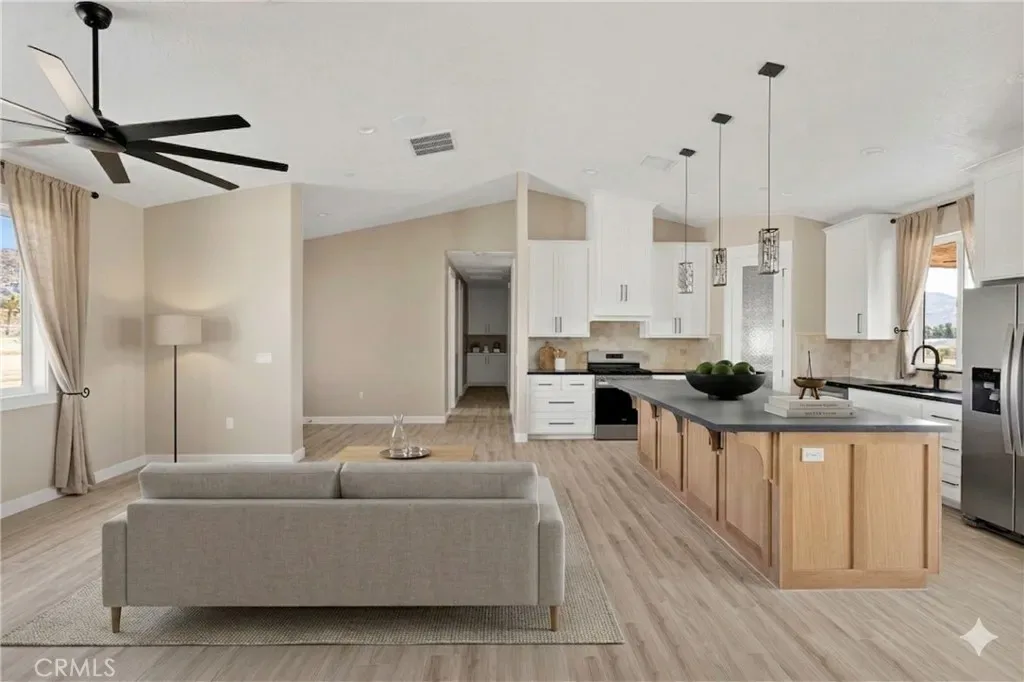 If you’re searching for a move-in ready home on acreage in Apple Valley, California, 23771 Pala Lane checks every box. This 4-bedroom, 2-bathroom single-story home offers 1,884 square feet of open-concept living space, fully fenced 2-acre lot, included appliances, a mounted TV, and a 2-car garage — all with no HOA.