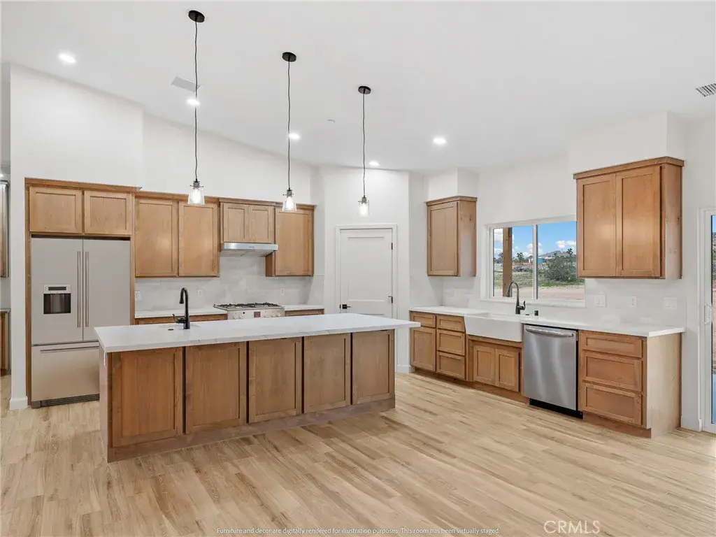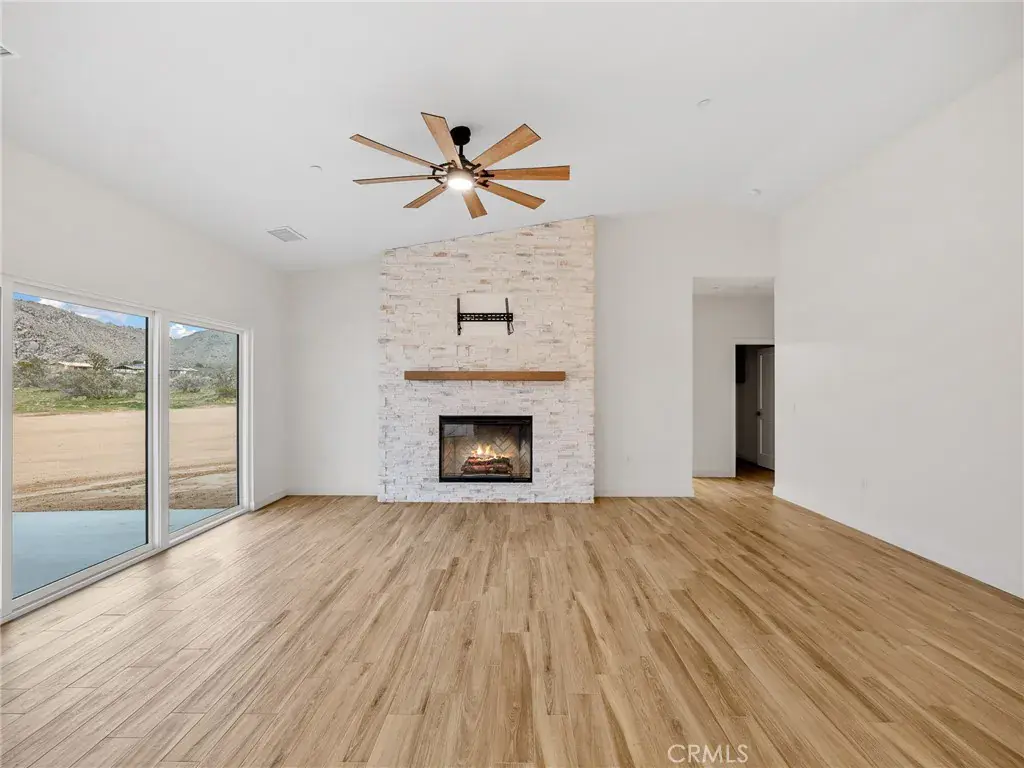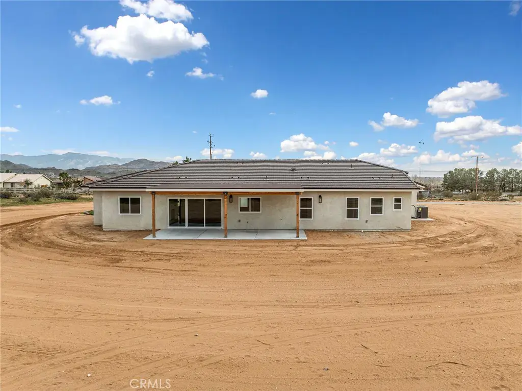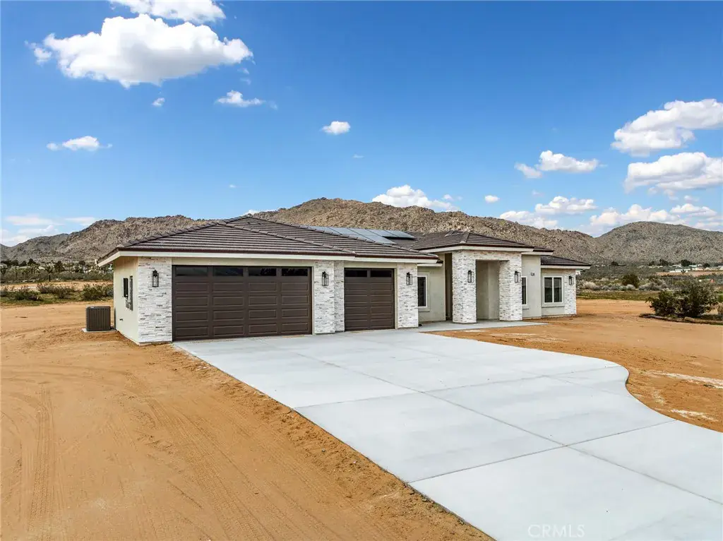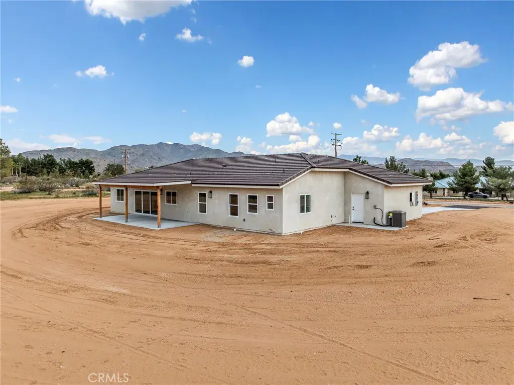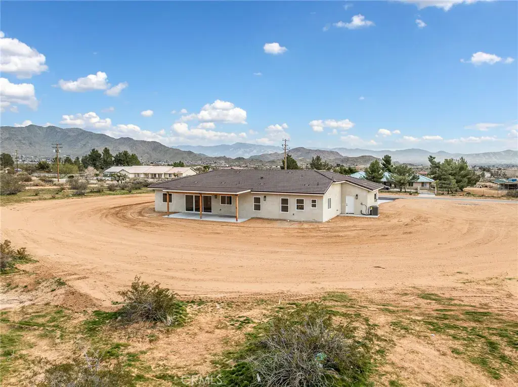 Nestled on 2.5 acres of pristine desert landscape, this newly constructed home blends modern comfort with wide-open Western serenity. Offering 4 spacious bedrooms and 2-1/2 beautifully appointed bathrooms, this 2,176-sq-ft residence is designed for both relaxation and functionality. Step inside to an airy, open-concept living space highlighted by vaulted ceilings and a cozy fireplace that anchors the great room. The gourmet kitchen is a true centerpiece, featuring a large island, upgraded stainless steel appliances, and beautiful alder hardwood stained cabinetry —perfect for cooking, gathering, and entertaining. Each bedroom offers ample space and walk-in closets, while the primary suite provides a peaceful retreat with views that stretch across the desert horizon. Large windows throughout the home frame sweeping vistas of the surrounding landscape, with the property sitting close to the base of the mountains for a dramatic and tranquil backdrop. With plenty of room to roam, this property is also ideal for equestrian enthusiasts—designated as horse property, it offers the freedom and space to create your own desert ranch lifestyle. A rare blend of new construction, natural beauty, and wide-open potential, this home captures the essence of desert living at its finest.