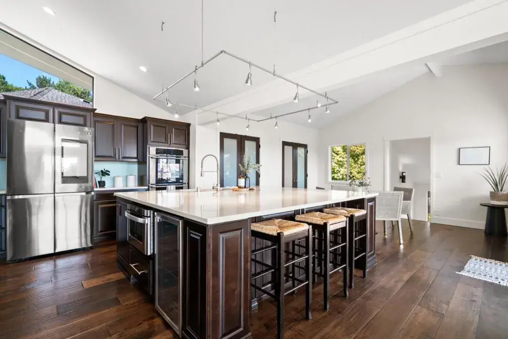 Perched at the top of a peaceful cul-de-sac, this spacious 5-bedroom, 2.5-bath home offers 3,492 sq ft of thoughtfully designed living area with sweeping views of the bay. Inside, the beautifully updated kitchen with huge island pairs modern finishes with everyday comfort. The open-concept upstairs living room is perfect for gathering and taking in the scenery, while the split-level primary suite provides privacy and retreat. Downstairs, you’ll find a generous family room and additional bedrooms, ideal for guests, kids, or a home office. The expansive lot offers room to play, garden, and fully embrace outdoor living. With its exceptional separation of space, this home balances togetherness and personal retreat. Just minutes from the beach, restaurants, shops, and award winning schools, its the perfect blend of convenience, comfort, and coastal lifestyle.